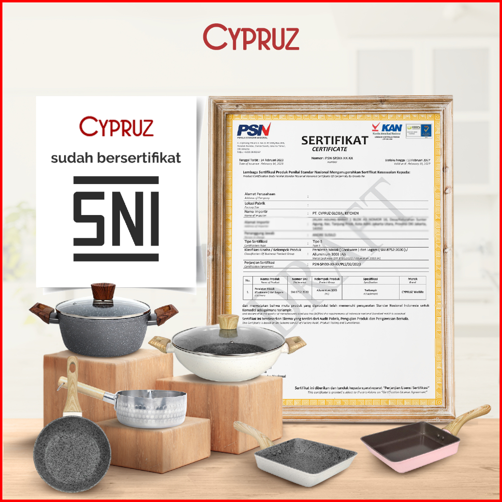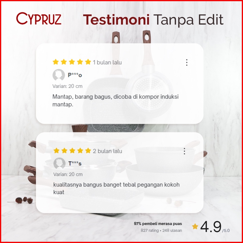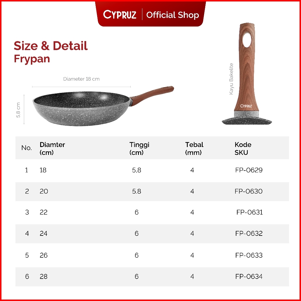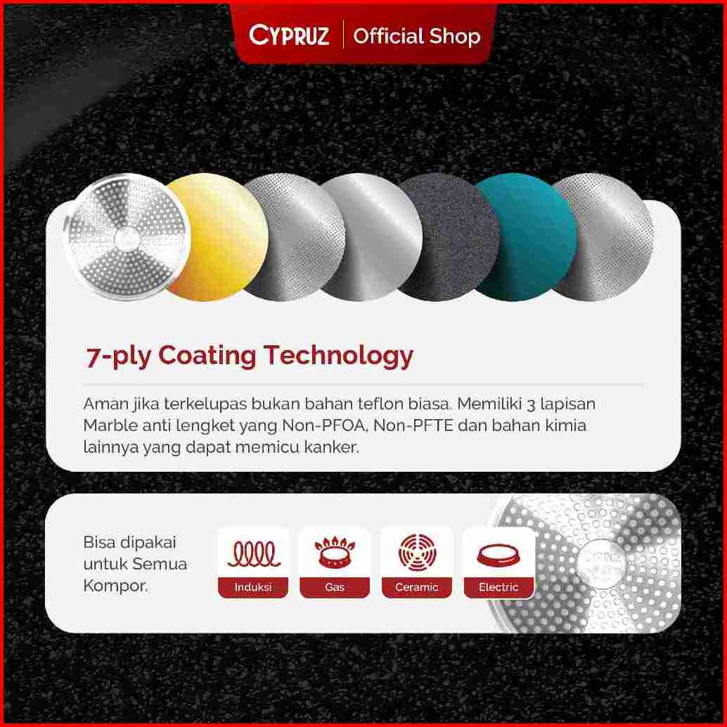 Cypruz Wajan Penggorengan Anti Lengket Fry Pan Marble Induksi Gagang Kayu 18cm
