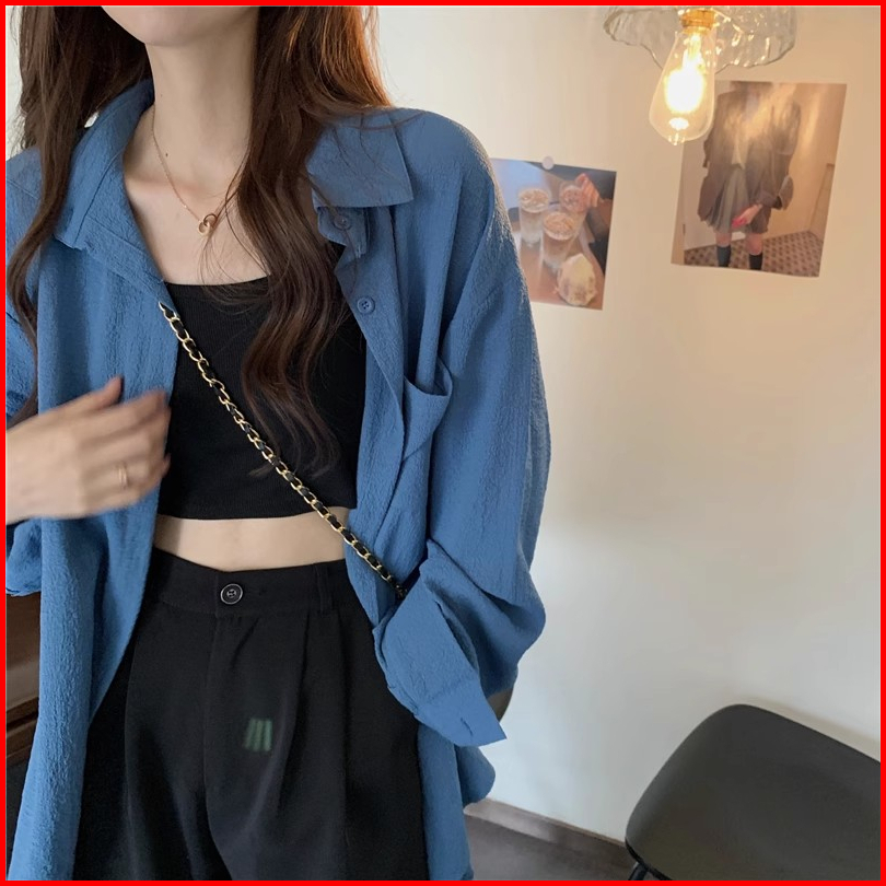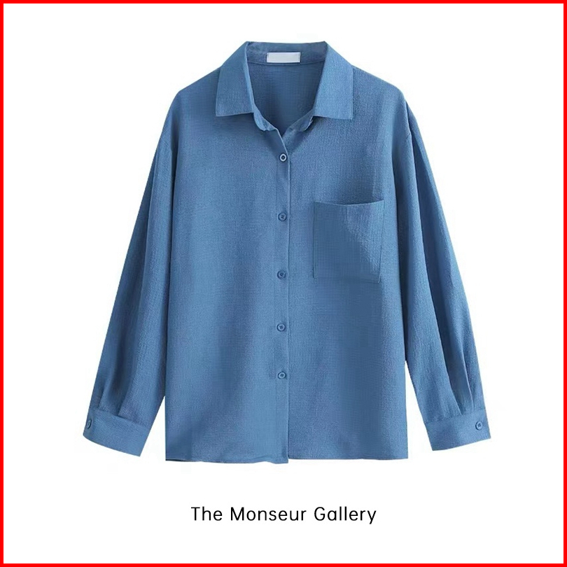 The Monseur Gallery Crinkle Shirt Oversize Kemeja Lengan Panjang Wanita Terbaru Blouse