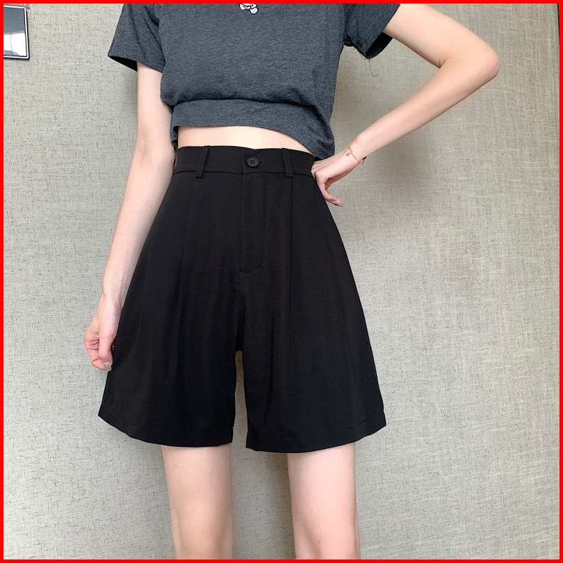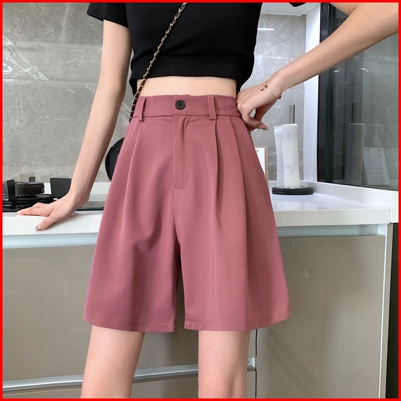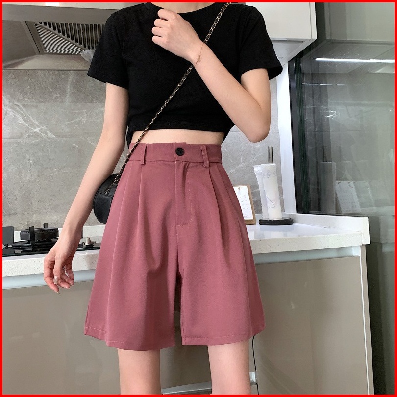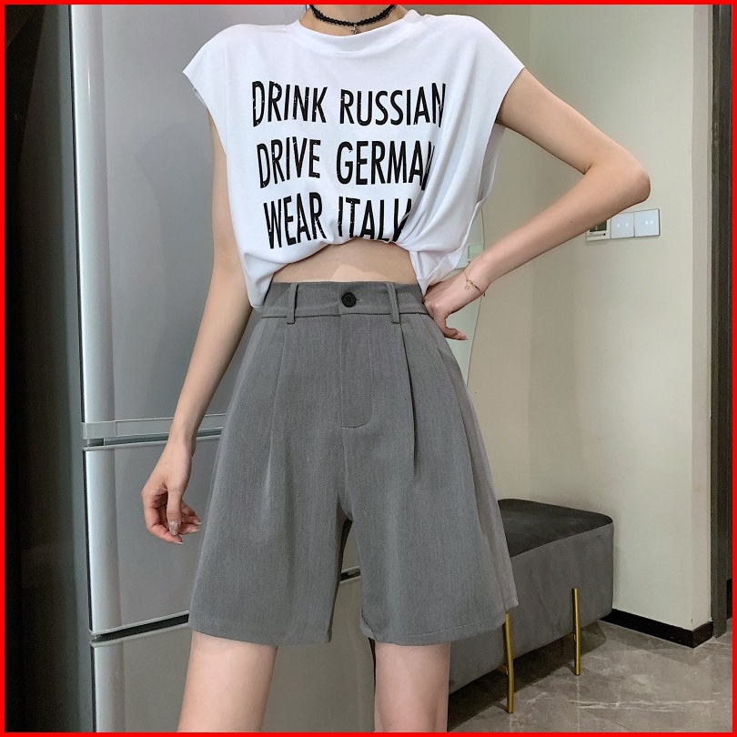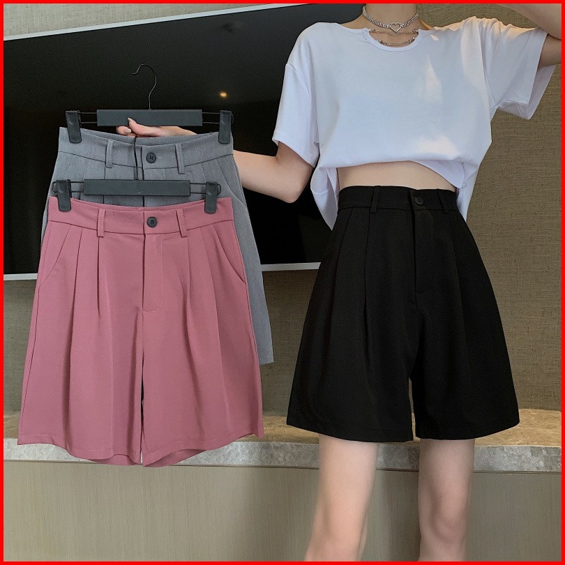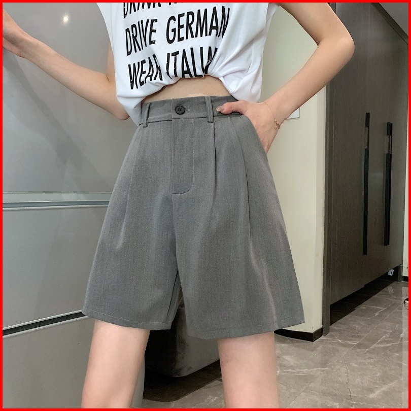 Yuruma S-4xl Plus Ukuran Gaya Korea Setelan Kaki Lebar Pinggang Tinggi Celana Pendek Celana Lurus Kasual