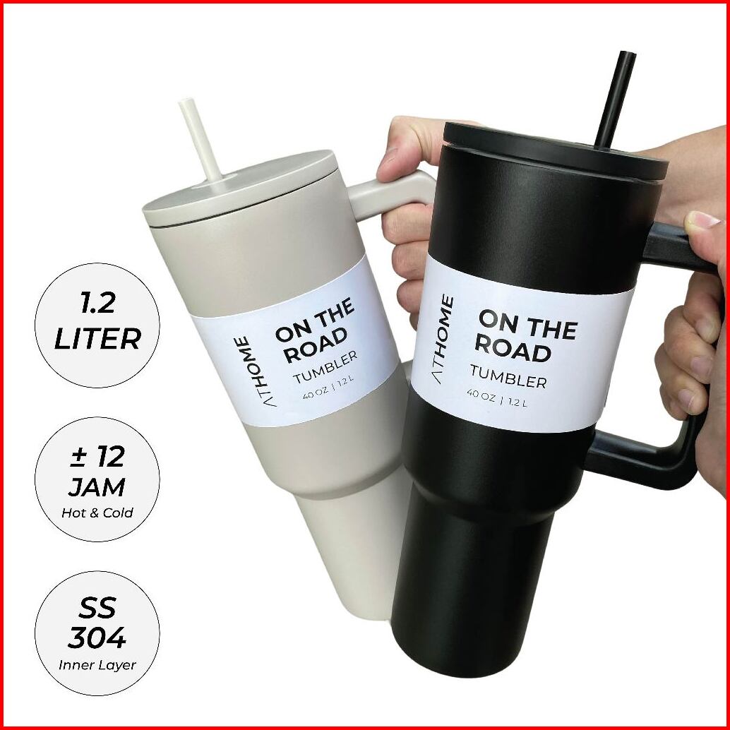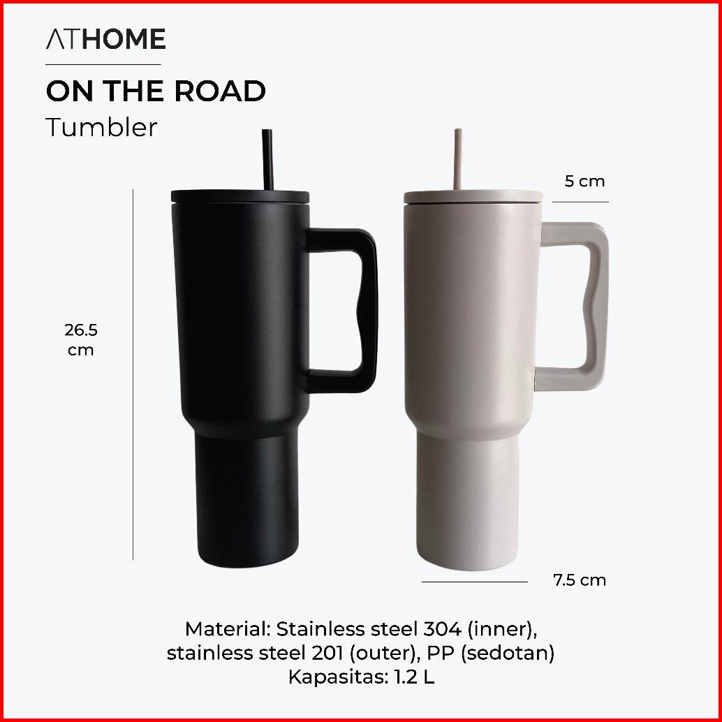 Athome On The Road Tumbler 1200 Ml Botol Minum Gagang Jumbo Stainless Steel