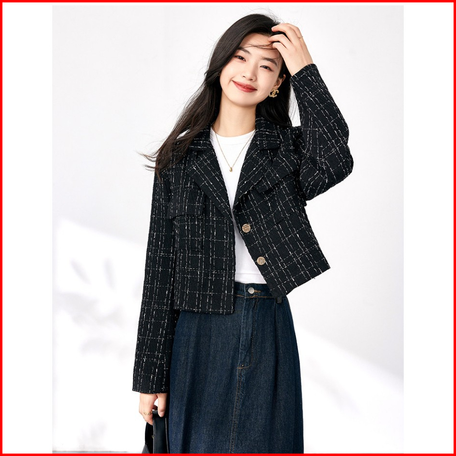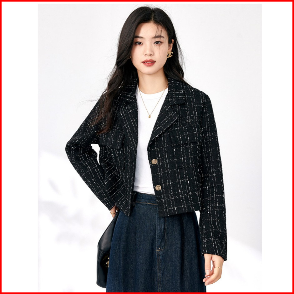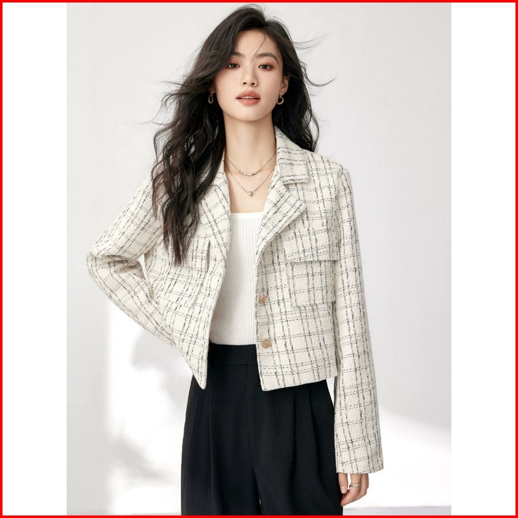 The Monseur Gallery Jacket Distro Jaket Crop Wanita Terbaru Korean Style Plaid Jacket