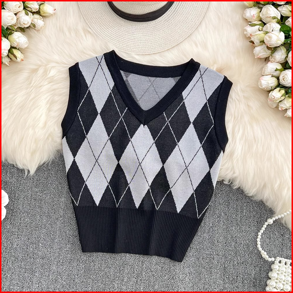 Obral Cuci Gudang The Monseur Gallery Rompi Rajut Wanita Korean Style Vest Knit Crop Top