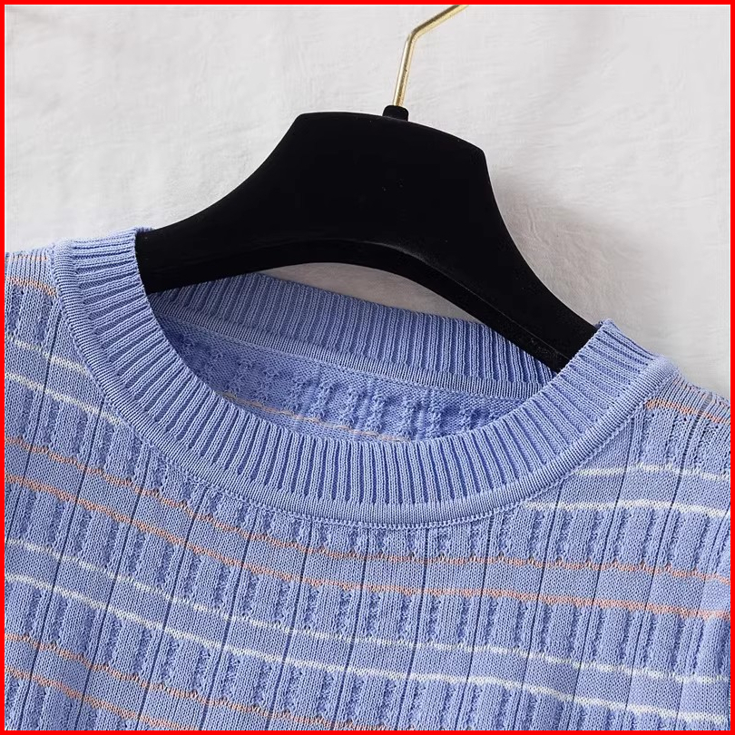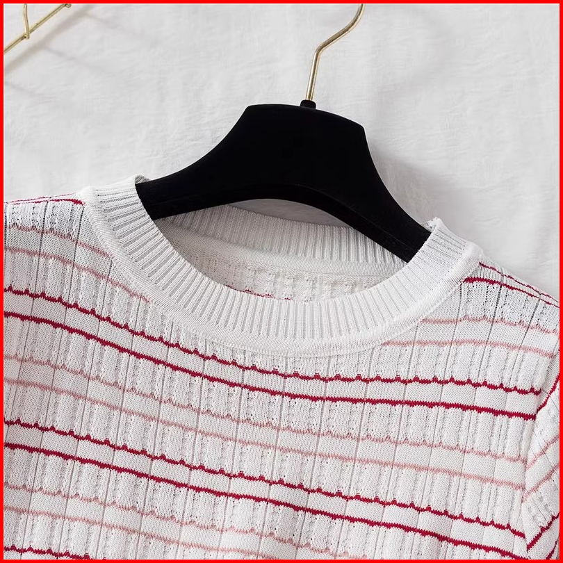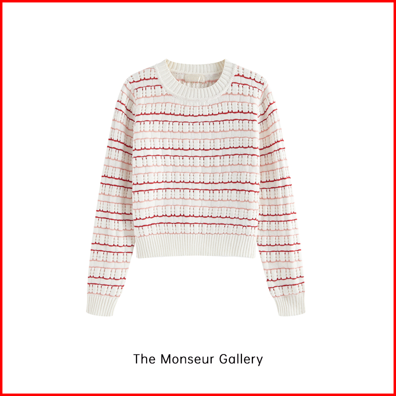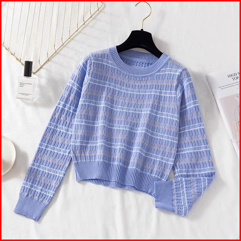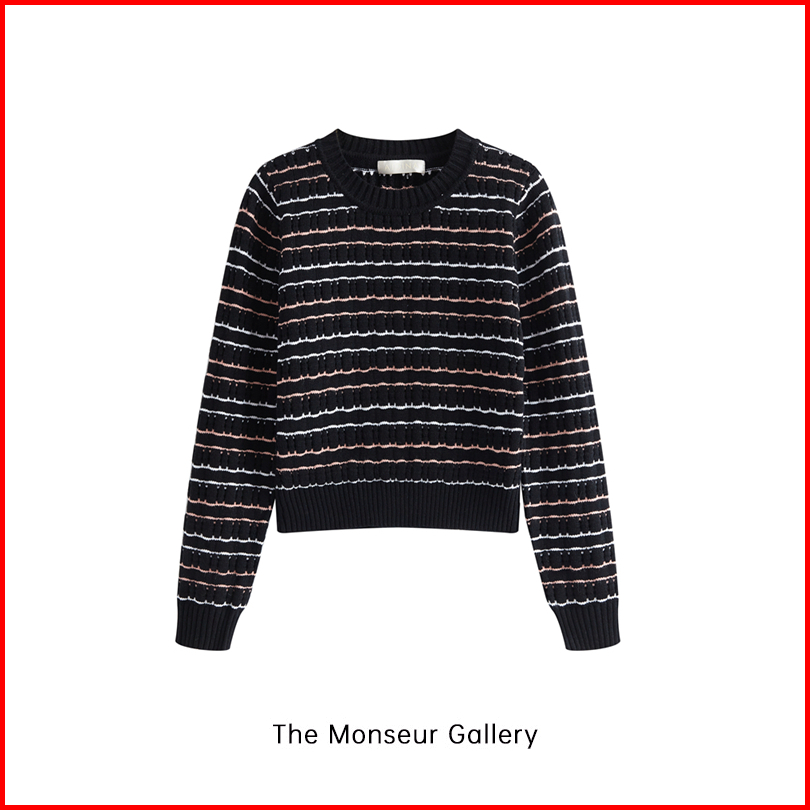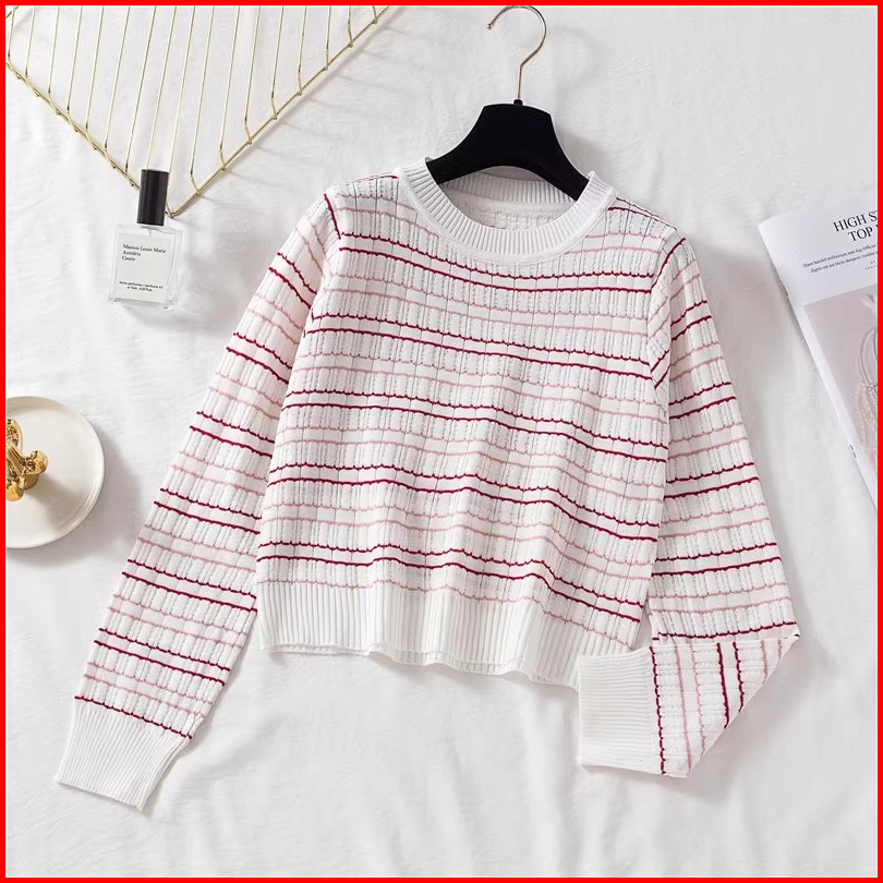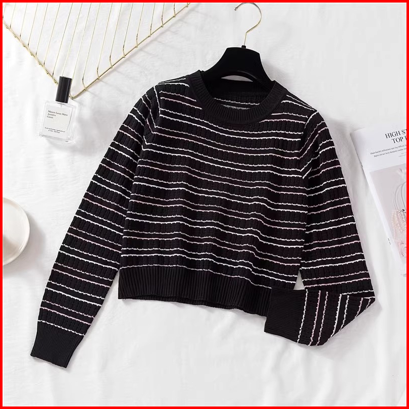 The Monseur Gallery Kaos Rajut Lengan Panjang Wanita Striped T-shirt Korean Style