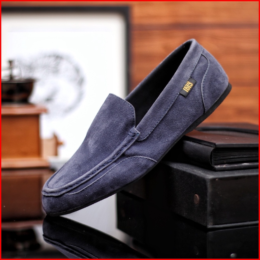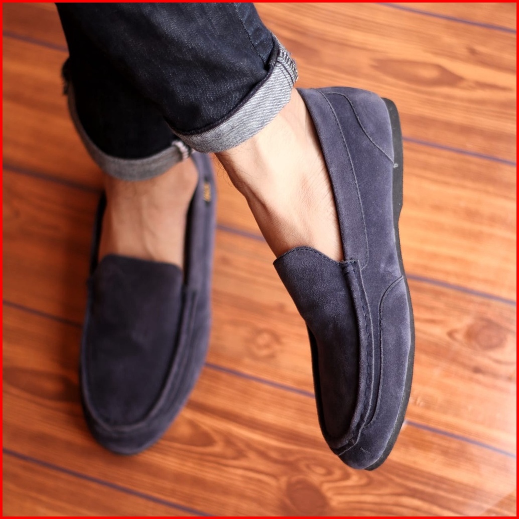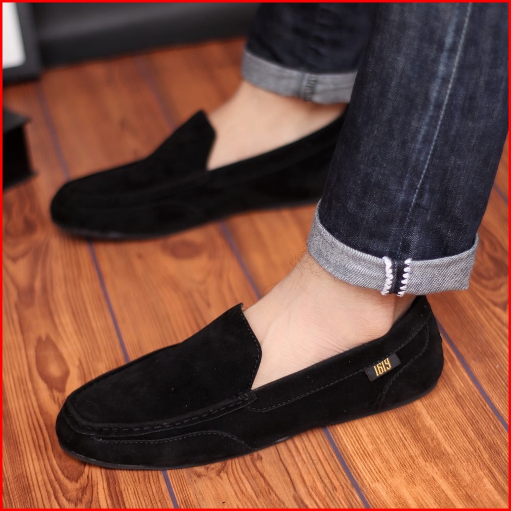 Molk Sepatu Kasual Slip On Pria Hitam Kulit Suede Original Branded Main Gaya Santai Hangout