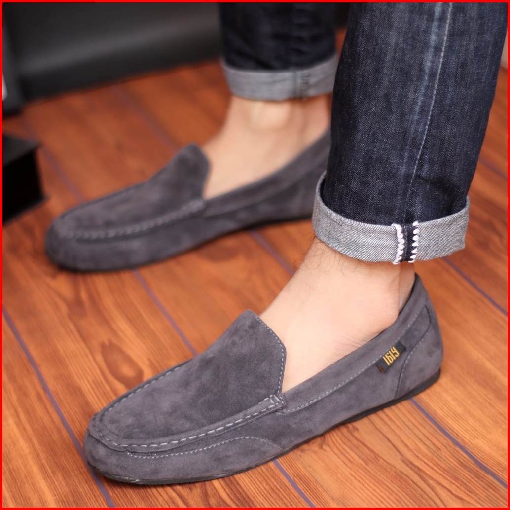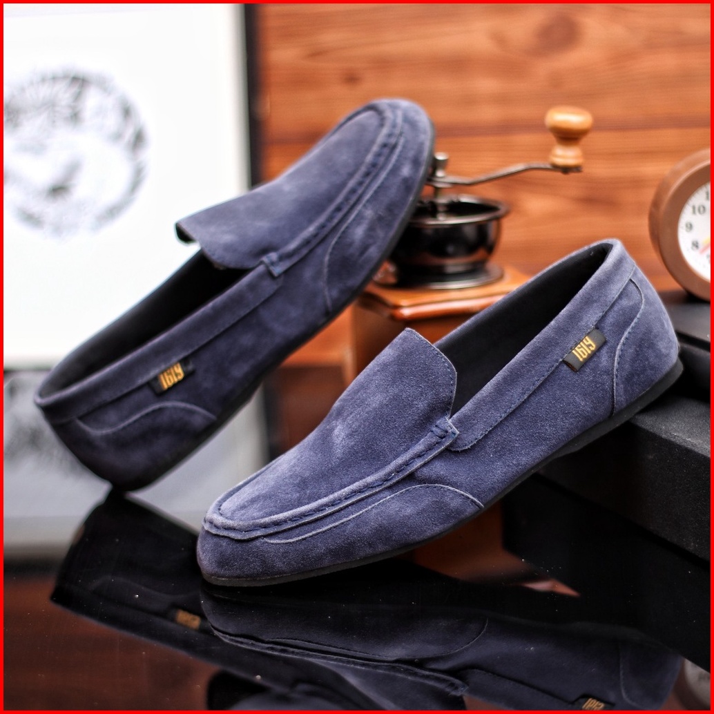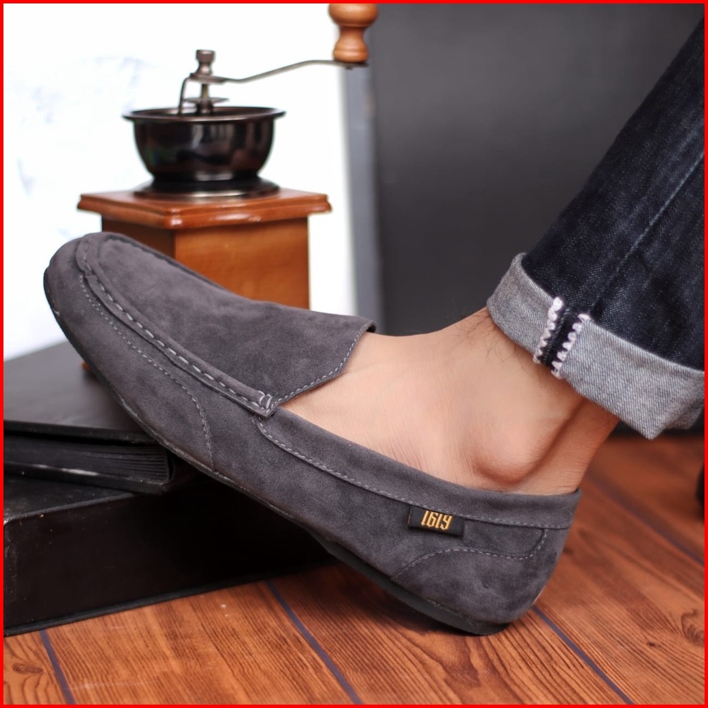 Molk Sepatu Kasual Slip On Pria Hitam Kulit Suede Original Branded Main Gaya Santai Hangout