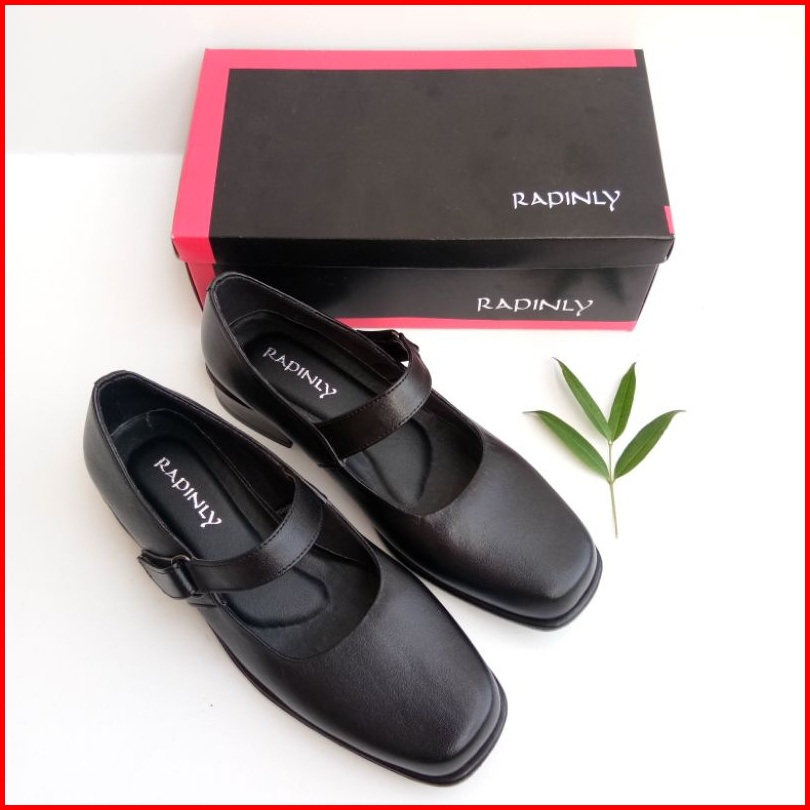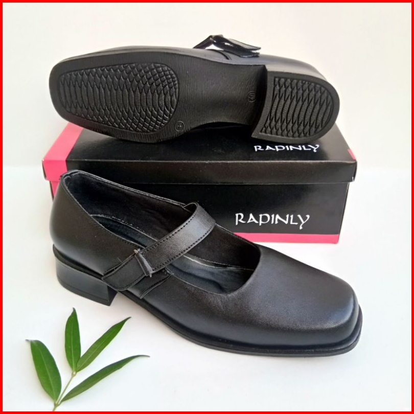 Sepatu Pantofel Paskibra Wanita Kulit Asli Hitam