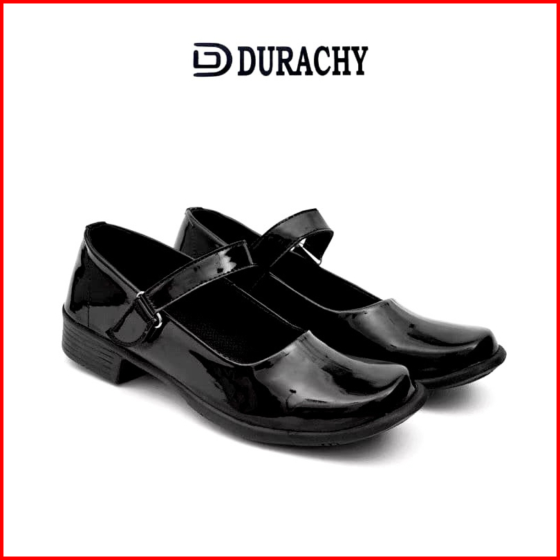 Durachy Sepatu Pantofel Wanita Kantor Hitam Kilap Glossy Paskibra