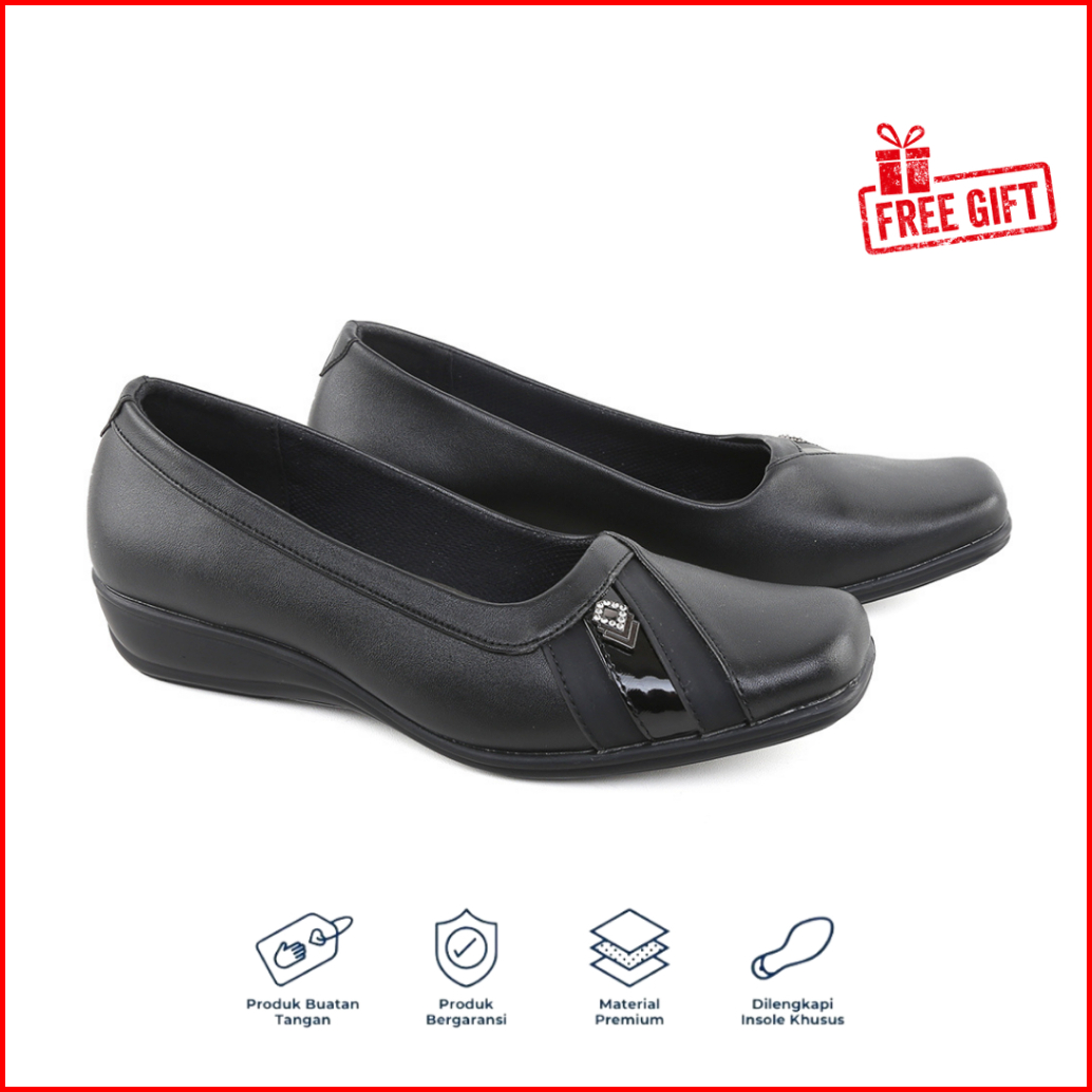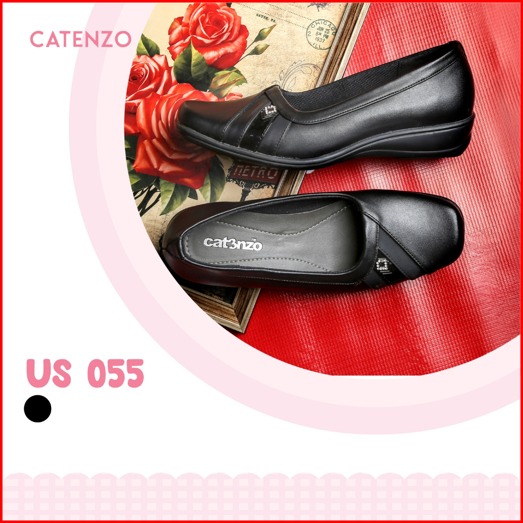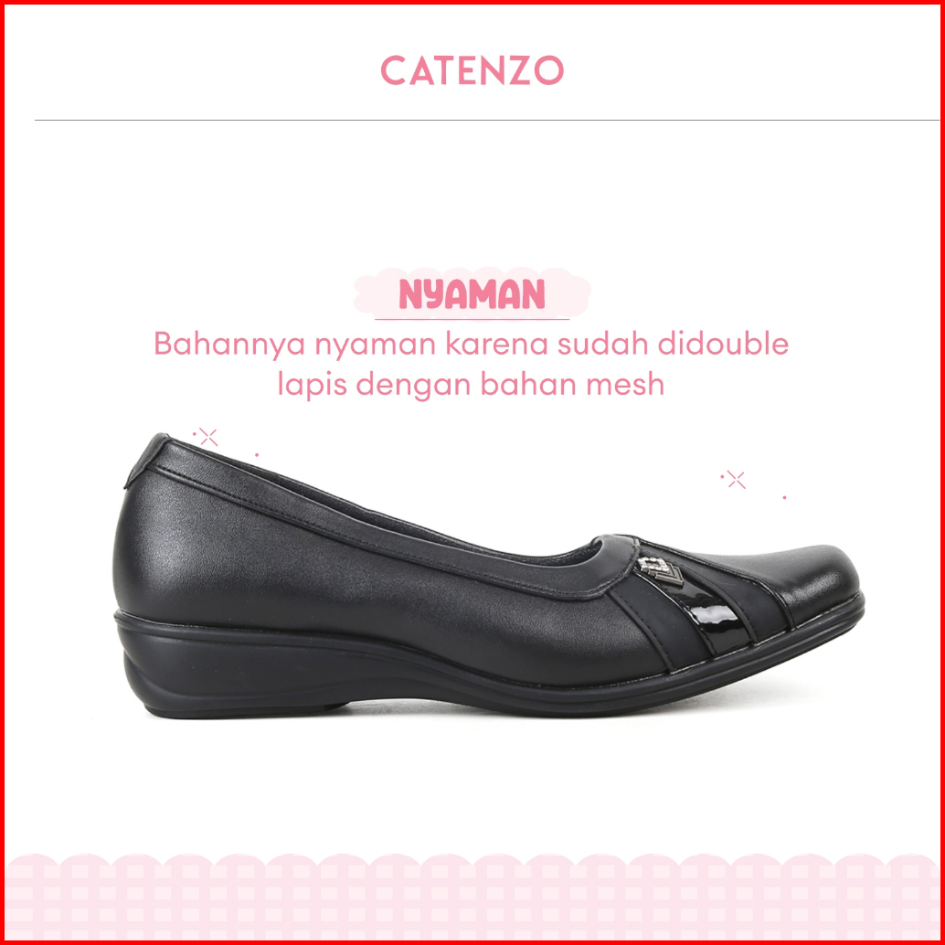 Free Gift Catenzo - Us 055 Sepatu Pantofel Wanita Slip-on Casual Original Kulit Sintetis Hitam Sepatu Formal Wanita Terl