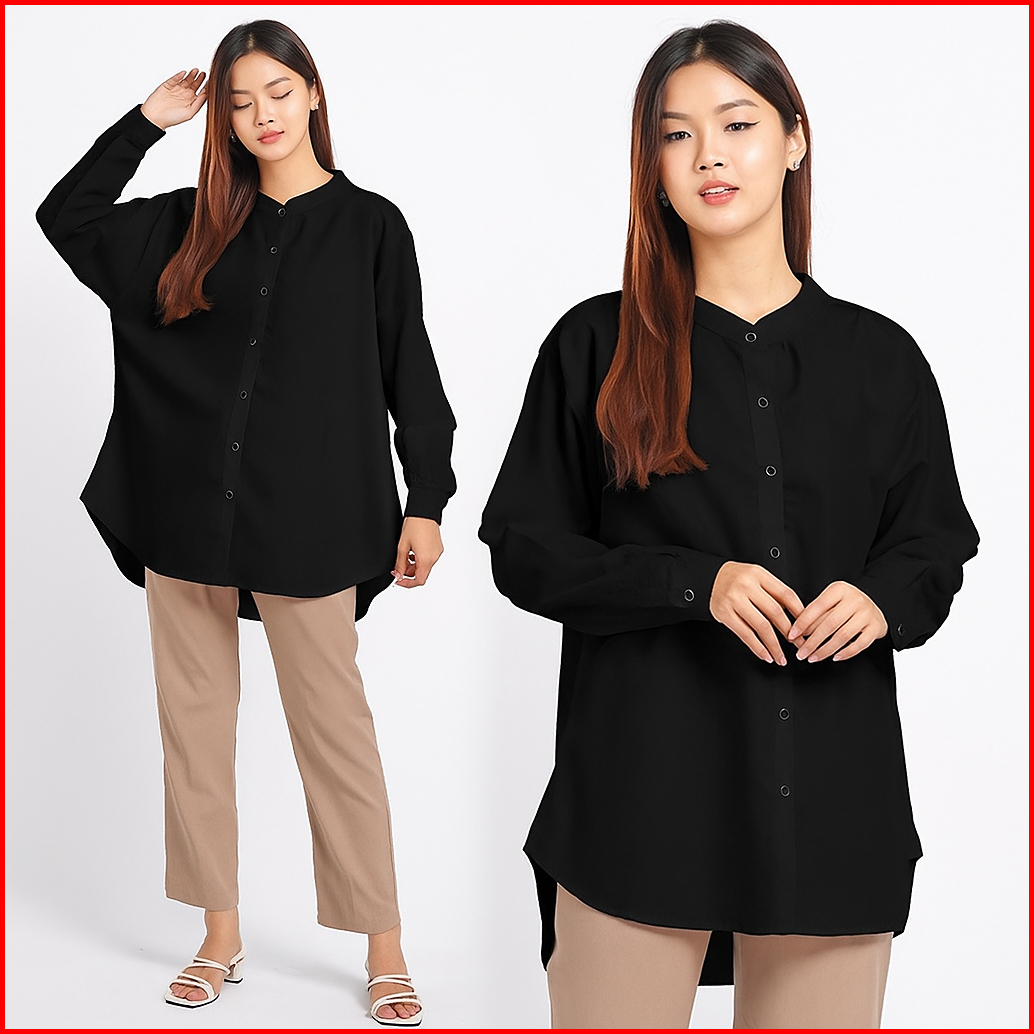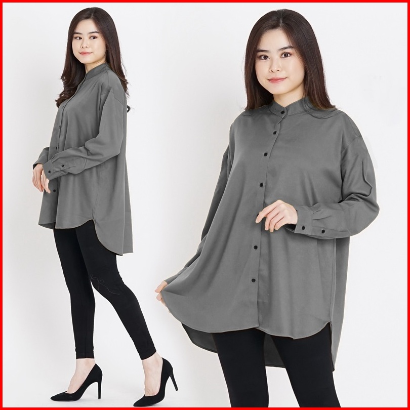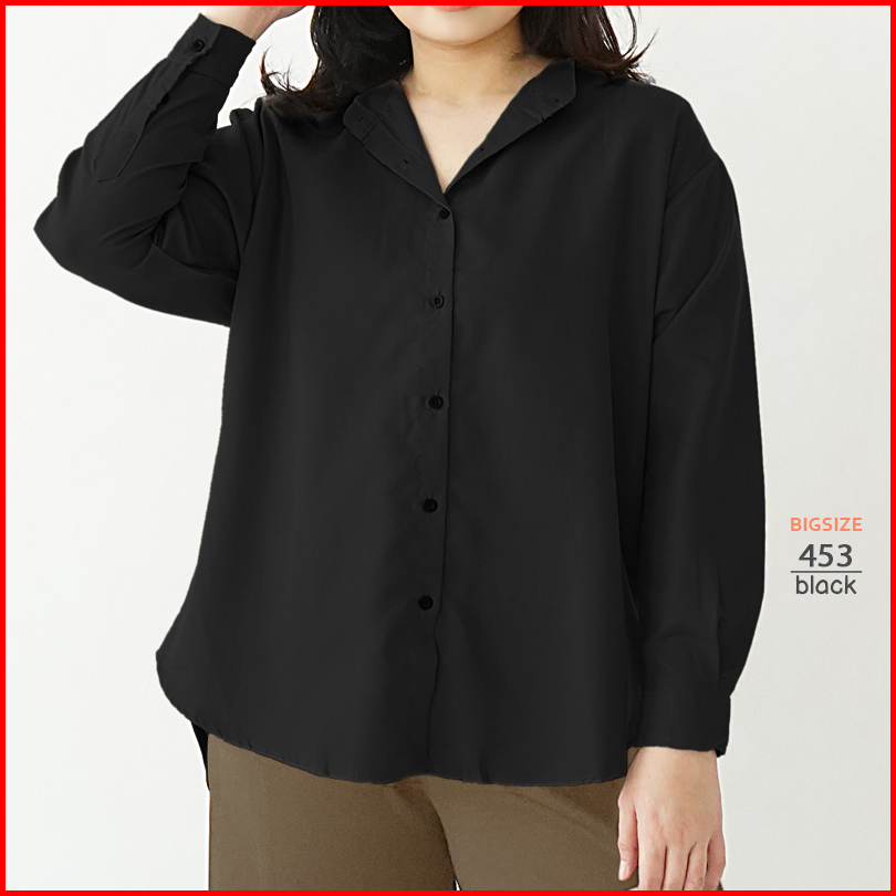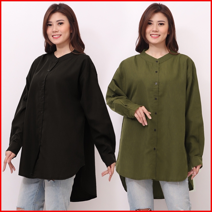 Arena - Kemeja Katun Jumbo Big Size Wanita Lengan Panjang Ld 120 Plus Size Shirt