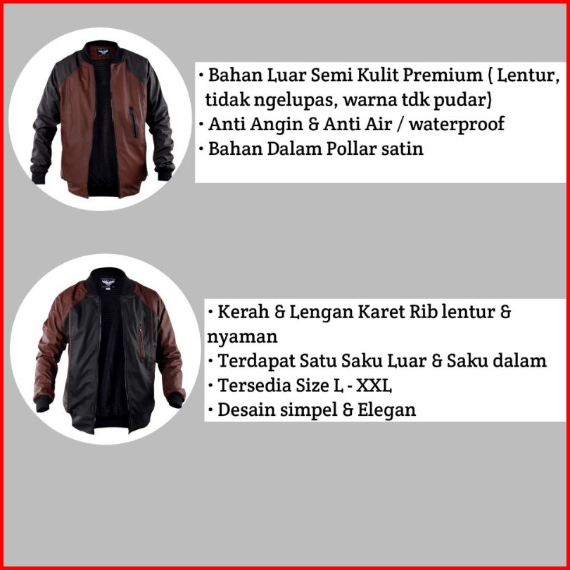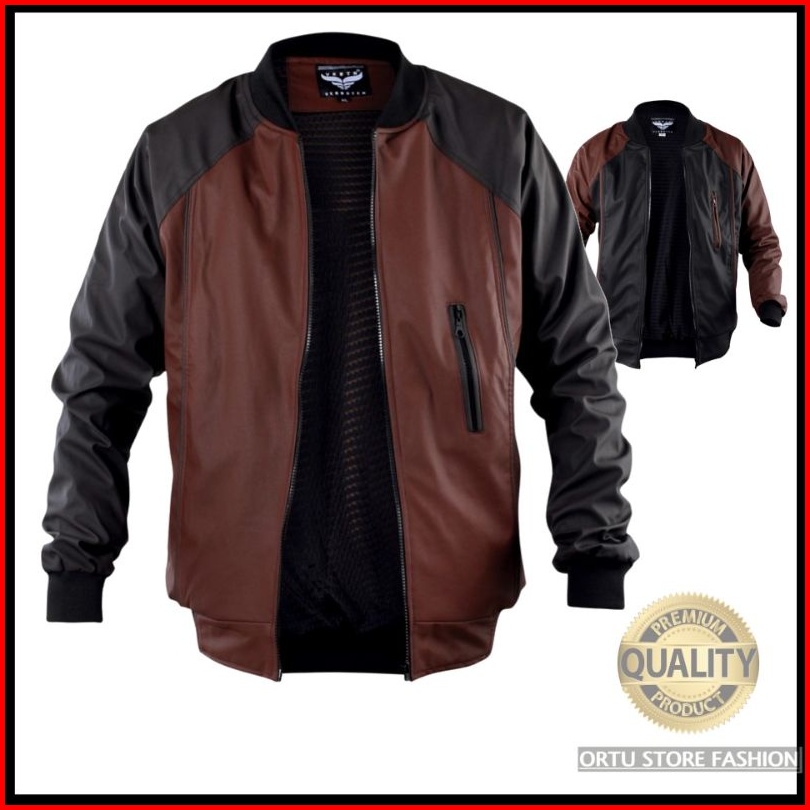 Jaket Kulit Bomber Premium Pria Bkrs 018 Anti Air Jacket Motor Distro Original Waterproof Cowok Laki Laki Semi Kulit Sin