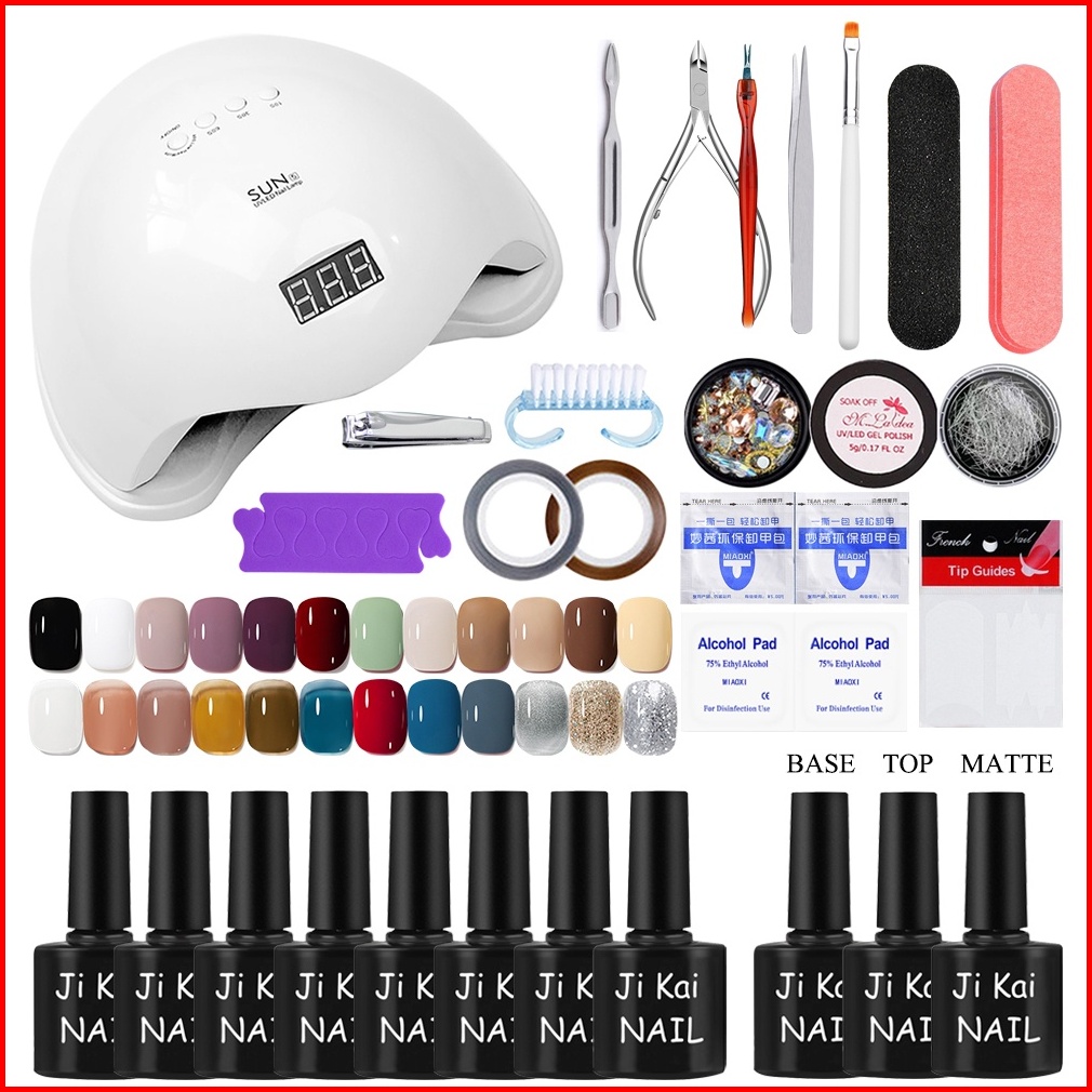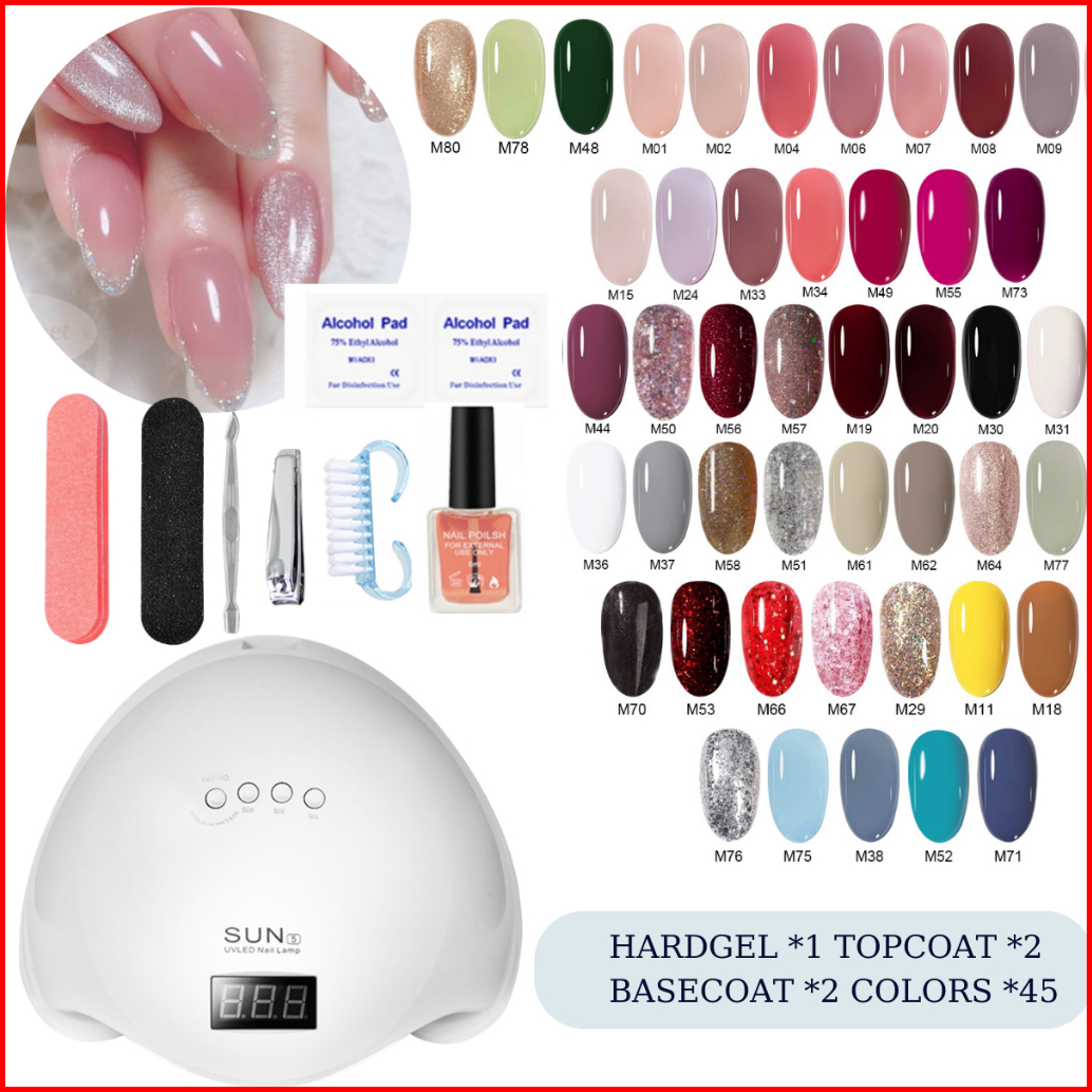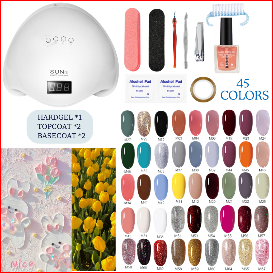 Alat Kutek Kuku Nail Art Set Kutek Gel Lampu Kuku Uv 48w 45 Warna Cat Kuku Gel Set Peralatan Manikur Seni Kuku Atasan Da
