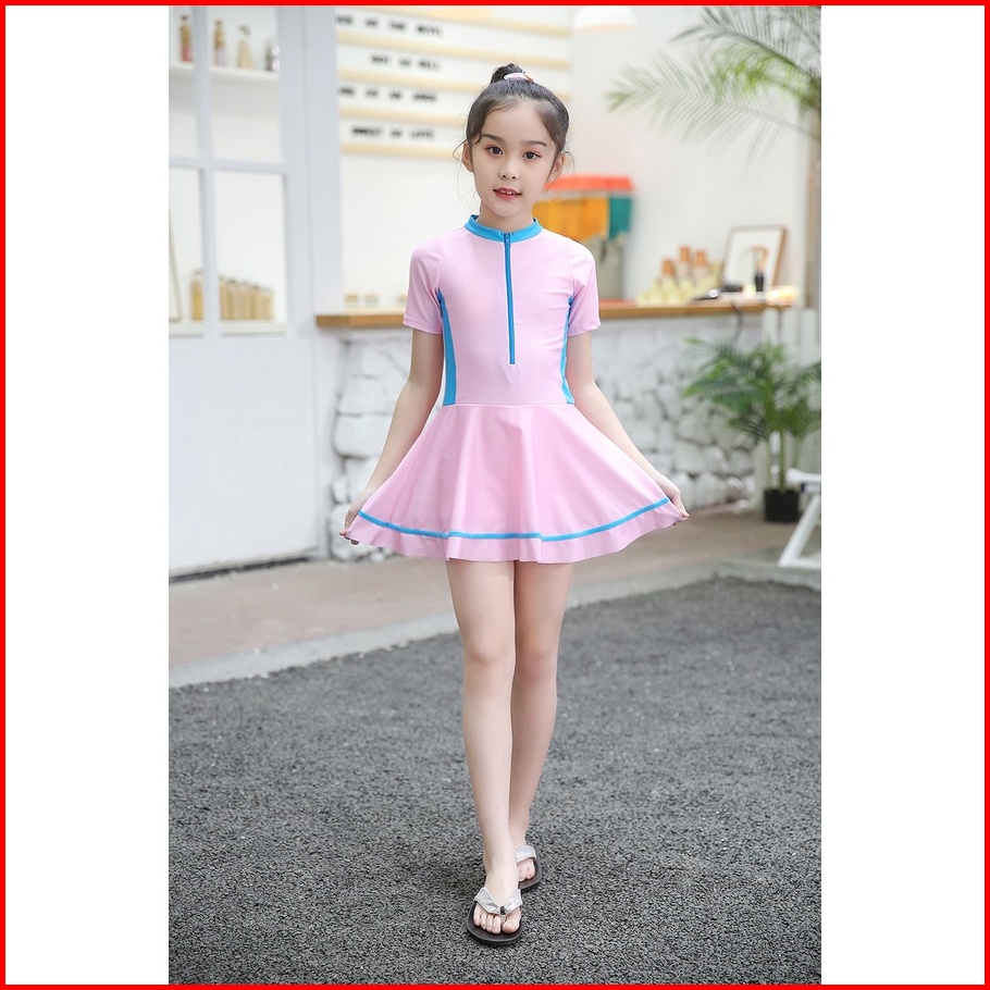 Baju Renang Anak Perempuan Rok Diving Pakaian Berenang Anak Perempuan Lengan Pendek