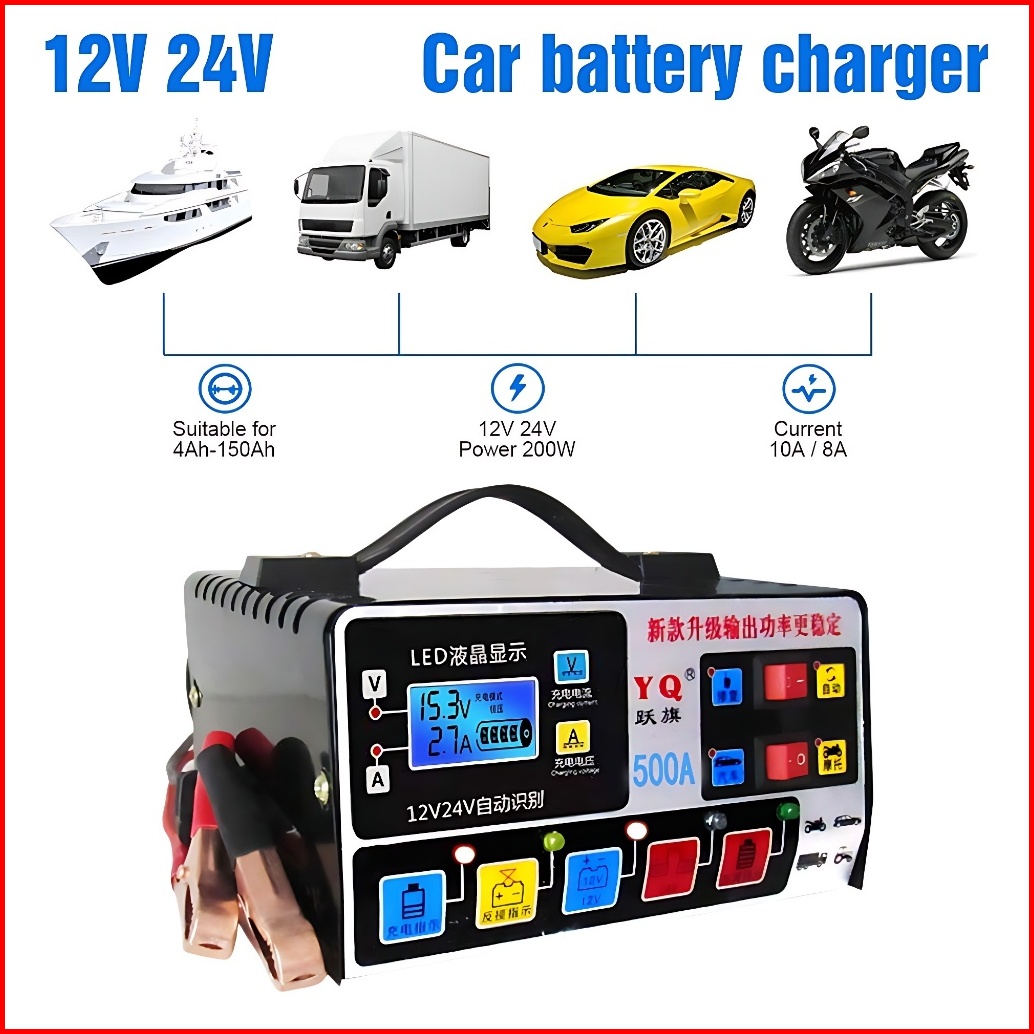 Charger Aki Otomatis Smart Intelligent Auto Repair Mobil Pengisi Daya 12v24v 400w 1000ah Charger Otomatis Aki Mobil Moto