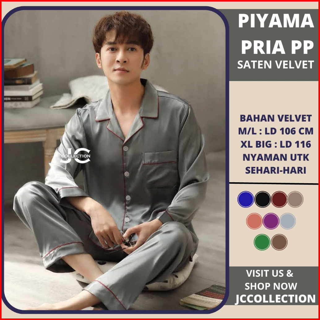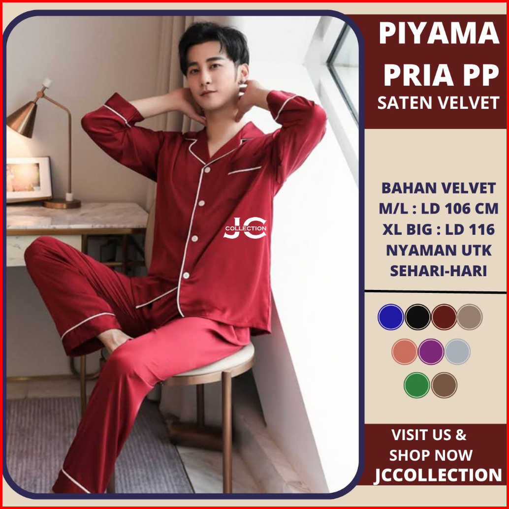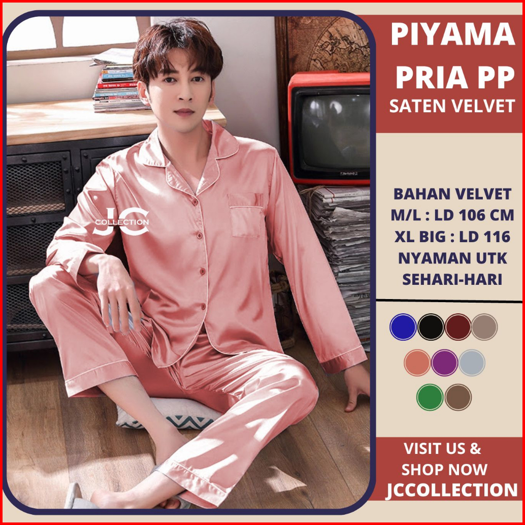 Piyama Pria Lengan Panjang Satin Pp L Pajamas Saten Long Piyama Satin Cowok Ls - Jccollections