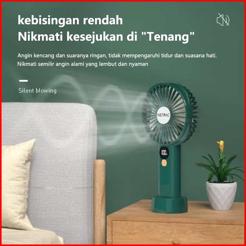 Netpac Kipas Angin Mini Portable 6000mah Real Dual Battery Brushless Macaron Led Mini Fan Original