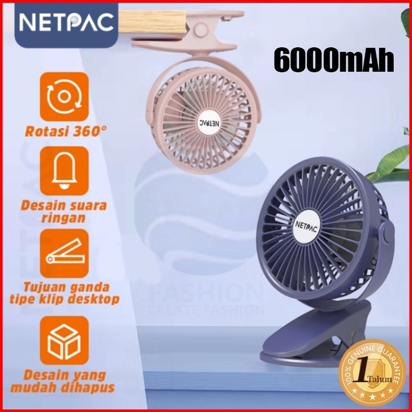 Netpac Kipas Angin Meja 6000mah Kipas Portable Clip Mini Fan 360 Rotasi Mini Jepit Portable Usb
