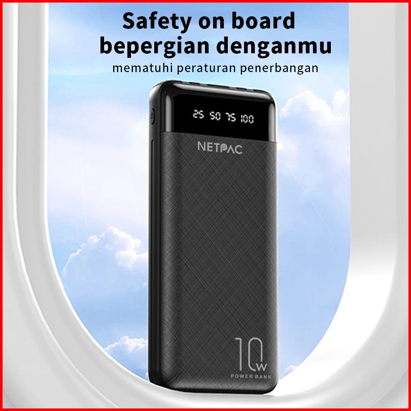 Netpac Powerbank 10000 Mah Fast Charging Lcd Display With Kabel Data Lightning Type-c Micro Usb Power Bank For Iphone Sa
