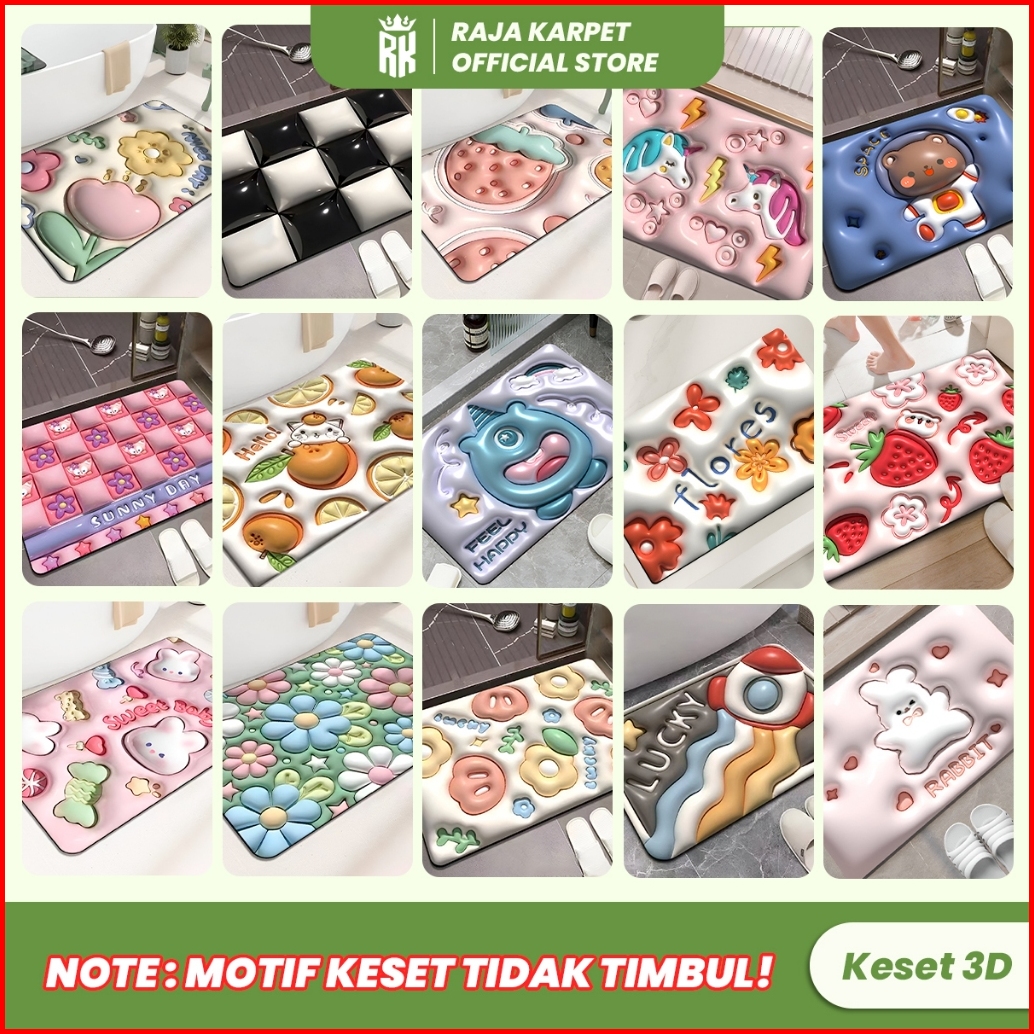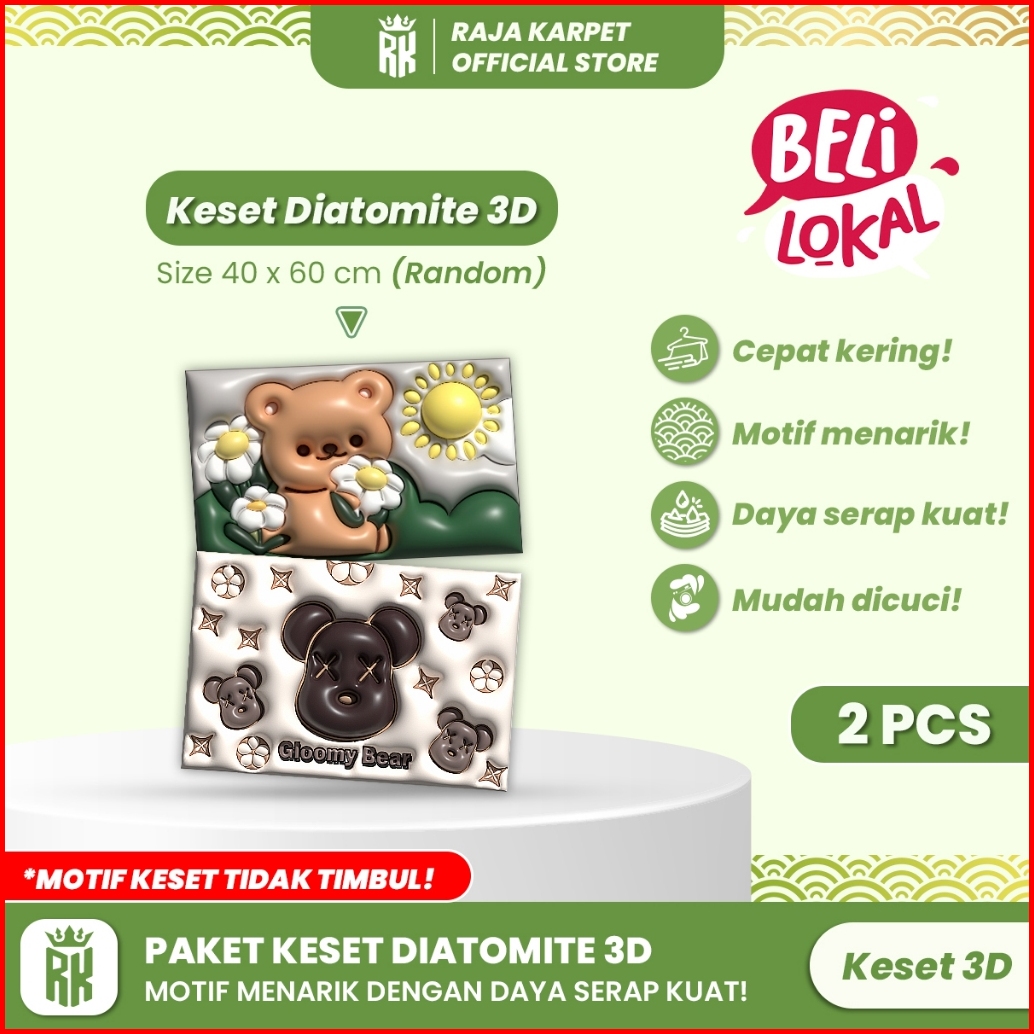 Raja Karpet - 2pcs Keset Kaki Diatomite 3d Anti Slip Keset Motif Random Keset Lucu Nyerap Air