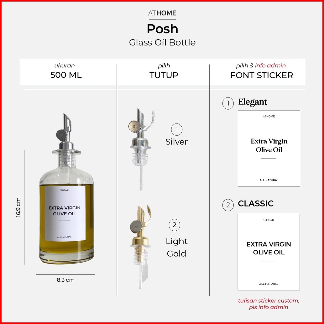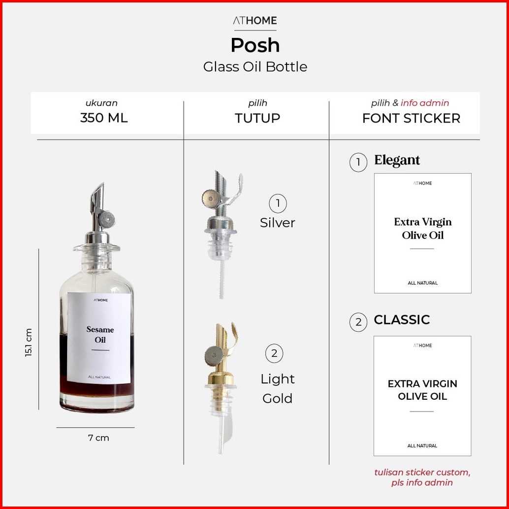 Athome Posh Glass Oil Bottle 350ml 500ml Botol Kaca Tempat Minyak Goreng Saus Vinegar