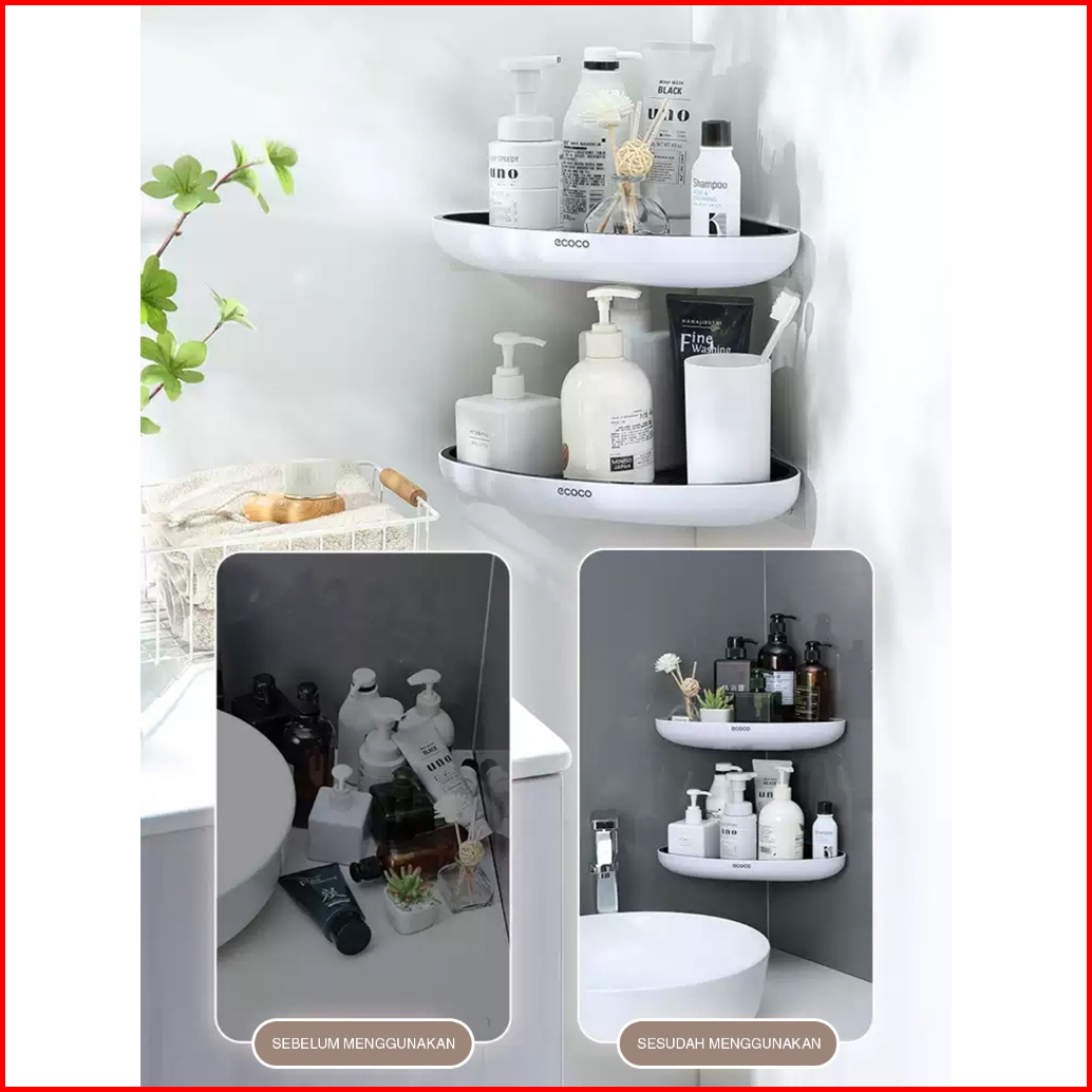 Ecoco Corner Shelf - Rak Siku Tembok Tempat Sabun Shampo Kamar Mandi Toilet Skincare Dapur Multifungsi