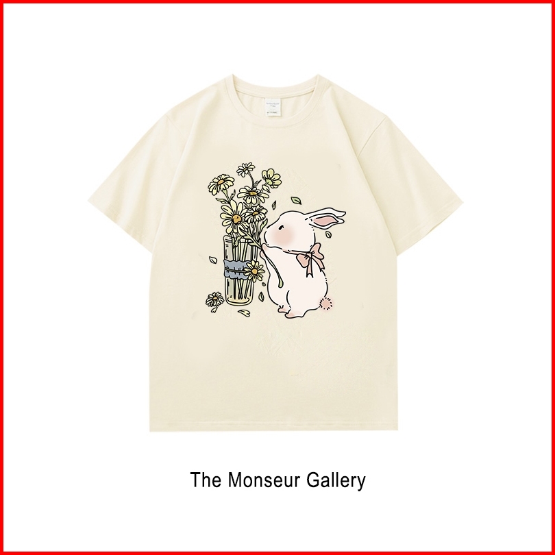 The Monseur Gallery T-shirt Oversize Rabbit Niche Fun Print Kaos Wanita Cream