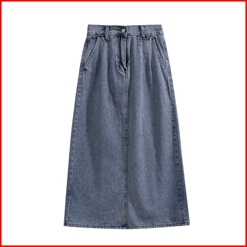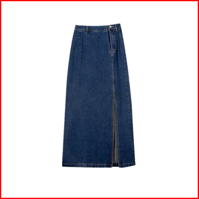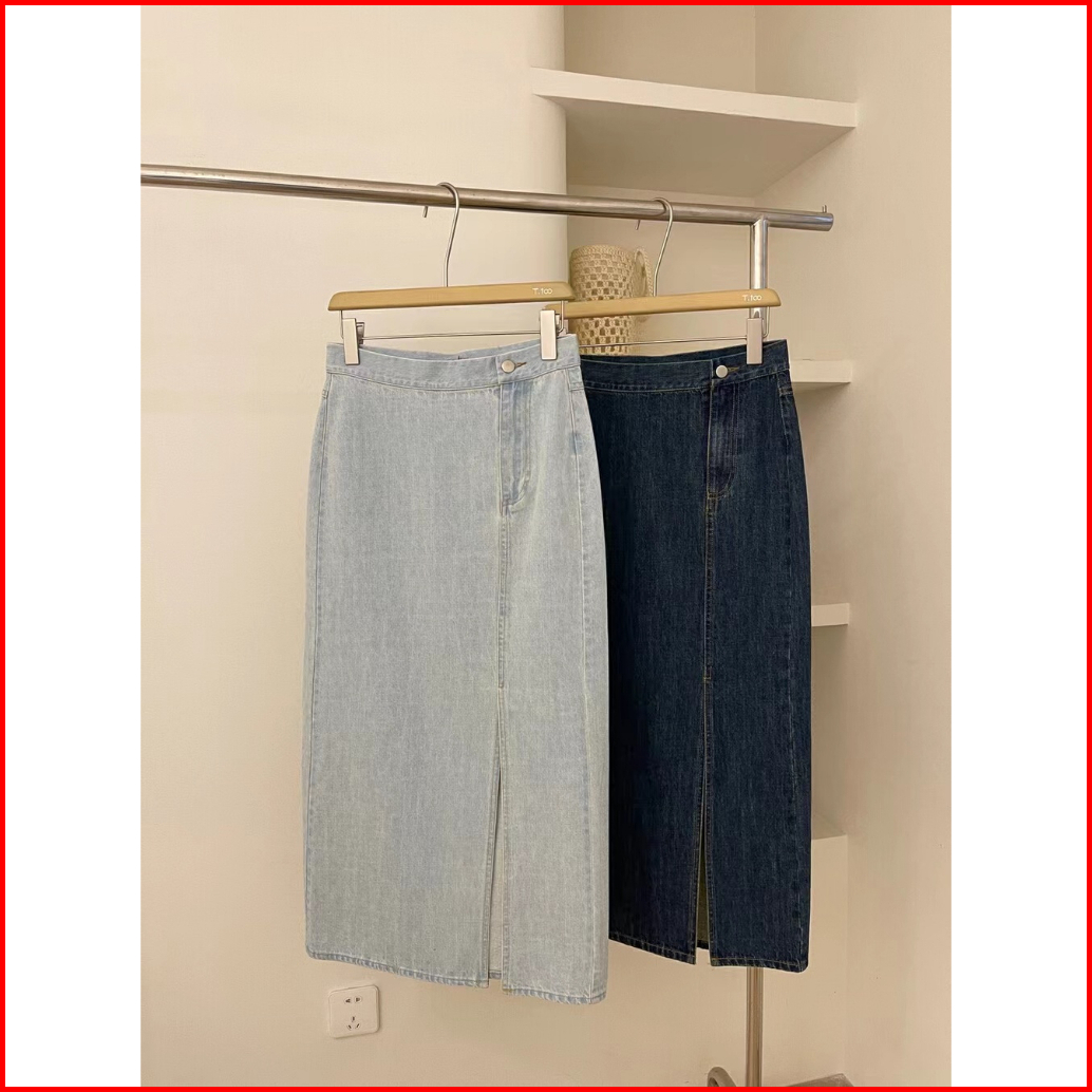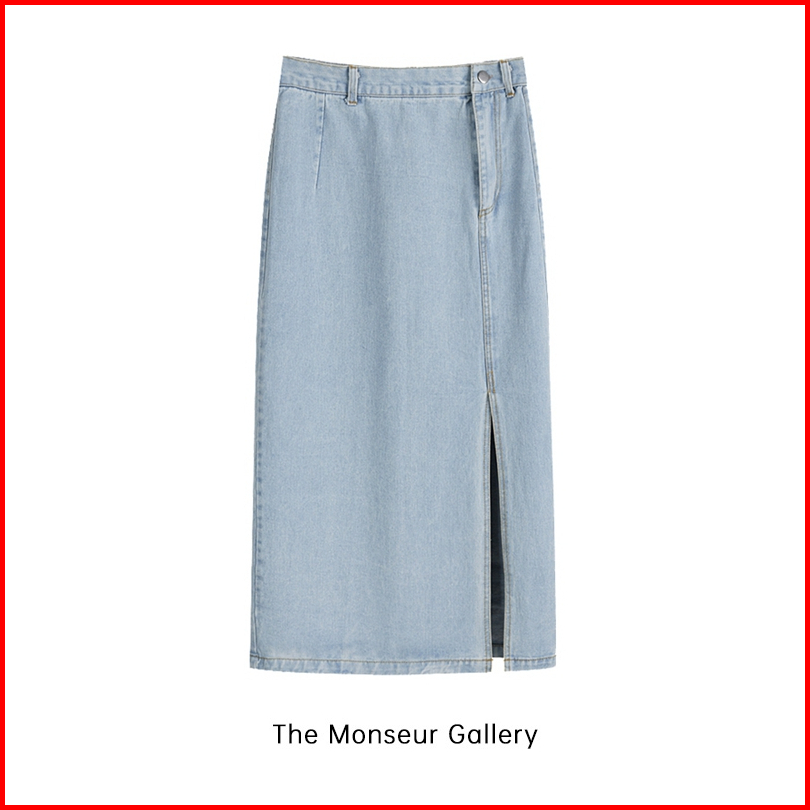 Obral Cuci Gudang The Monseur Gallery Rok Denim Panjang Wanita Slit A-line Skirt Midi Korean Style