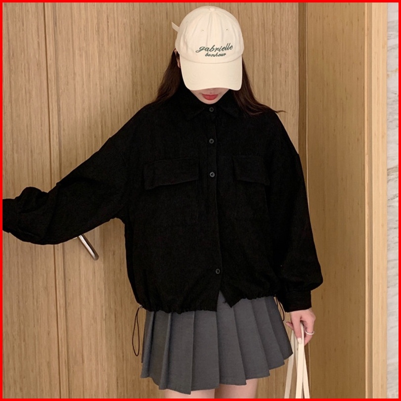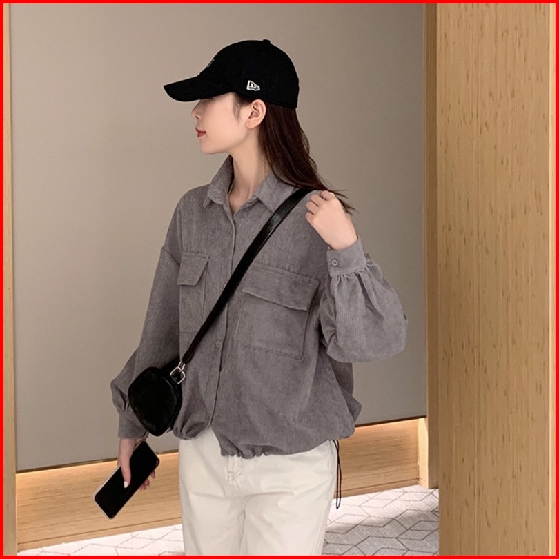 Yuruma Kemeja Korduroi Retro Gaya Korea Kemeja Kardigan Pendek Longgar