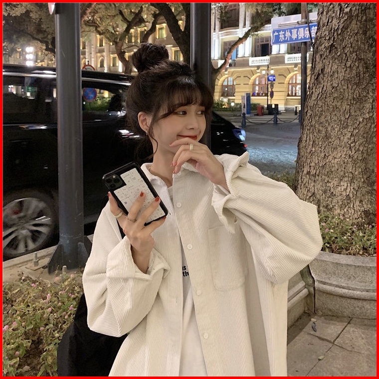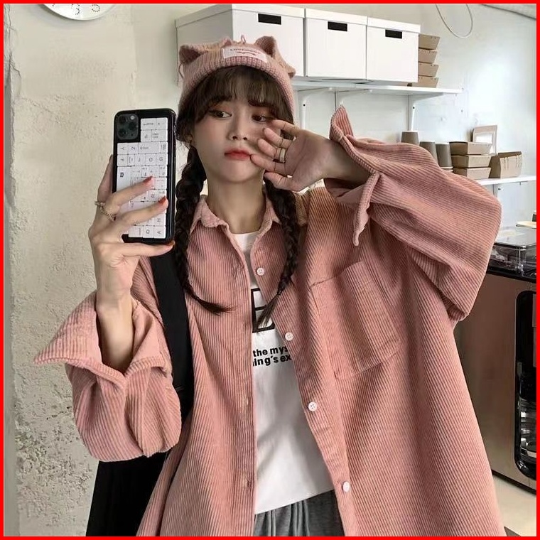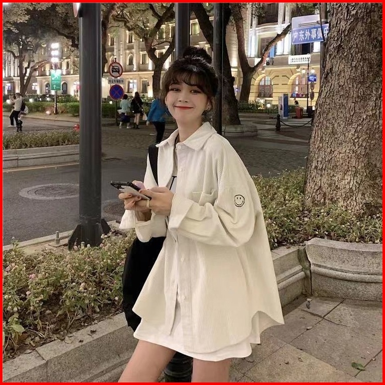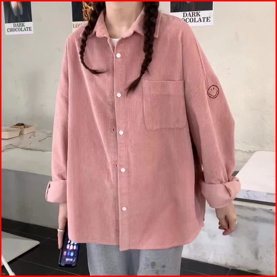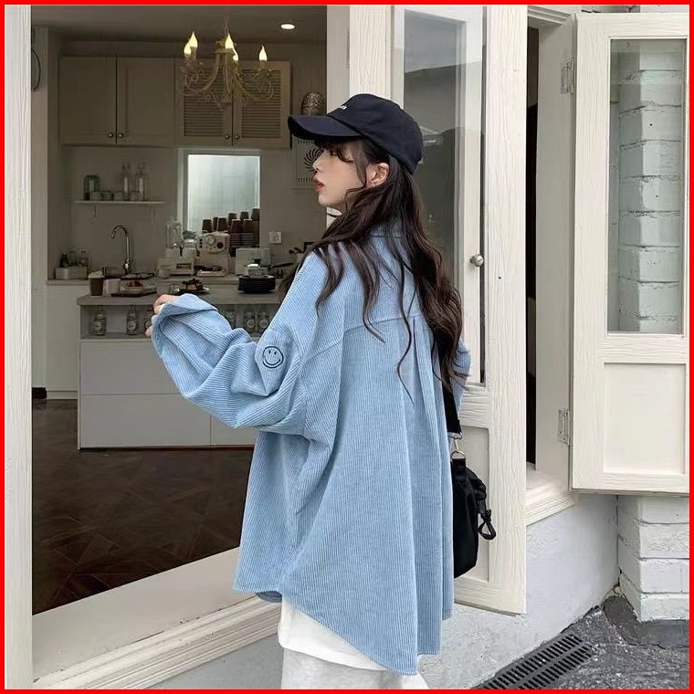 Yuruma Kemeja Korduroi Korea Bordir Smiley Longgar Kemeja Kasual Jaket