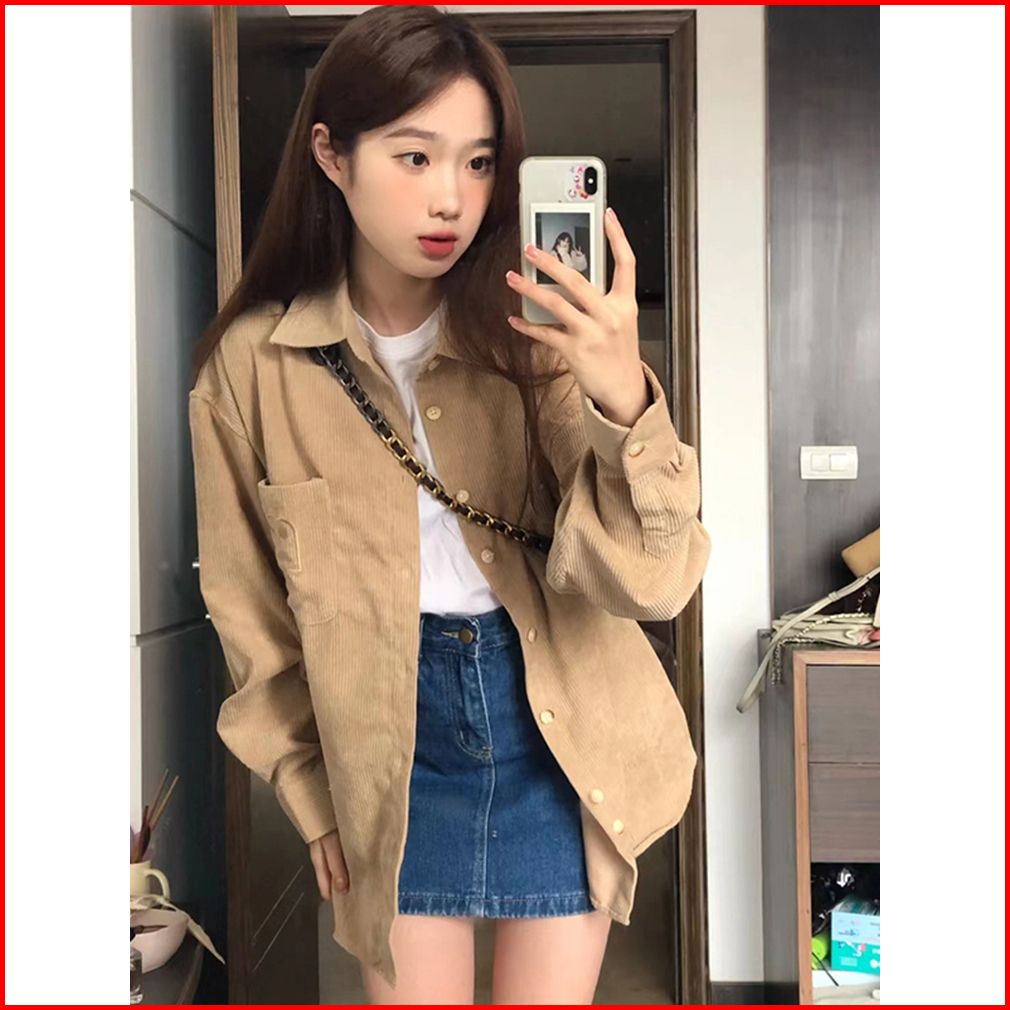 The Monseur Gallery Blouse Corduroy Wanita Kemeja Korduroi Korean Style Oversize