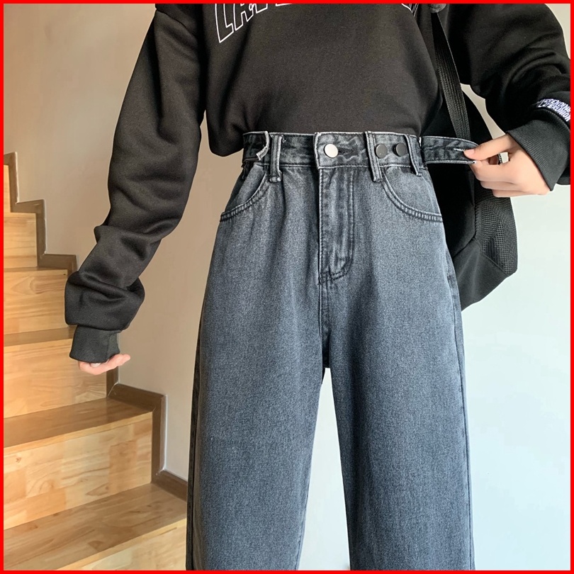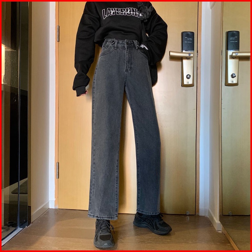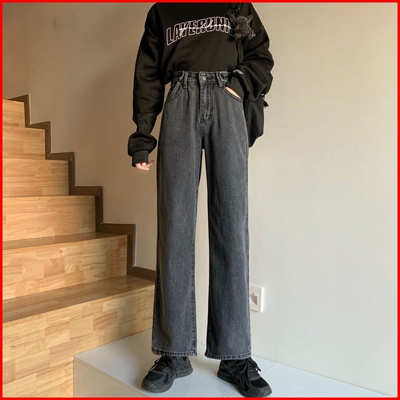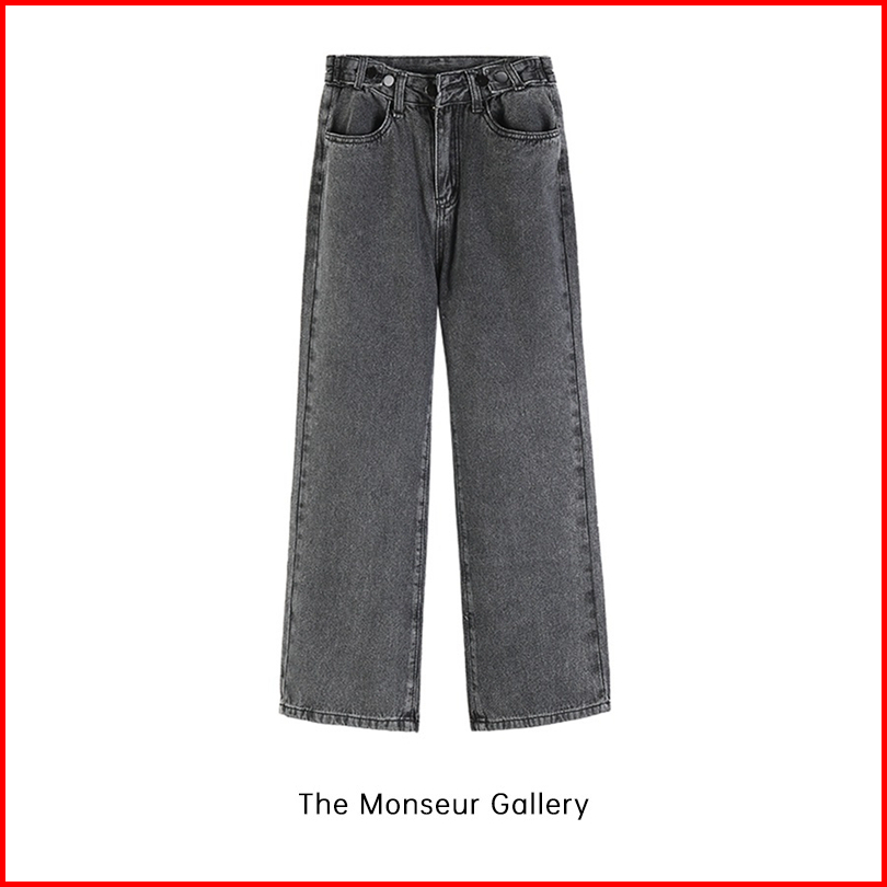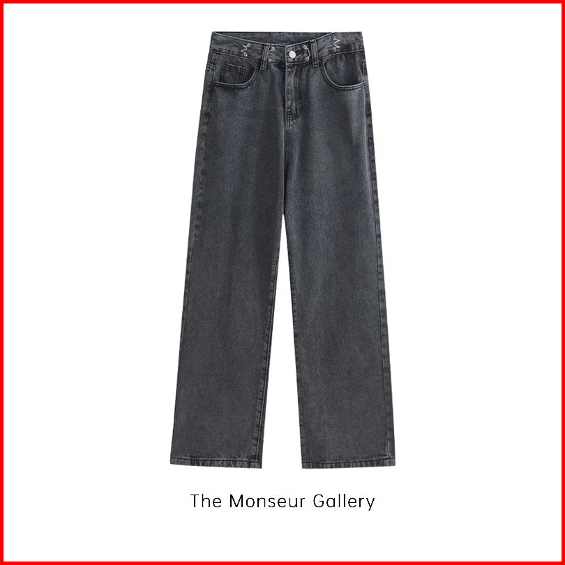 The Monseur Gallery Celana Jeans Wanita Abu-abu Gelap Wide-leg Korean Style Loose