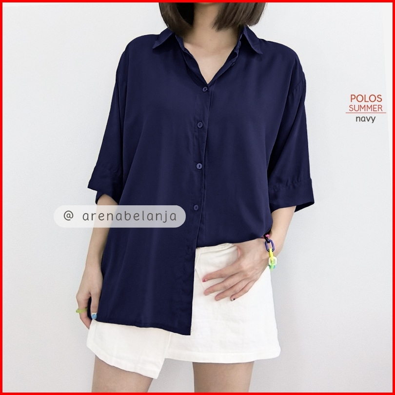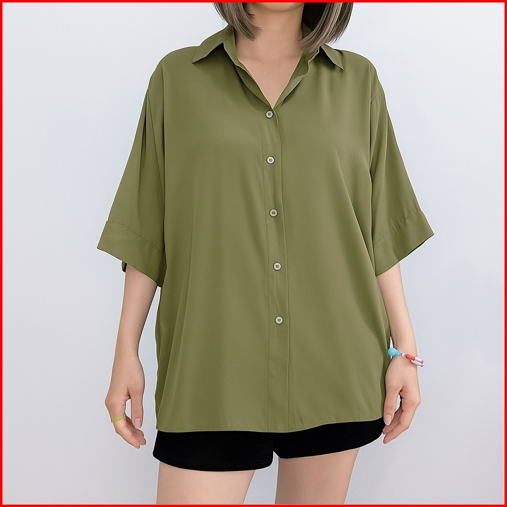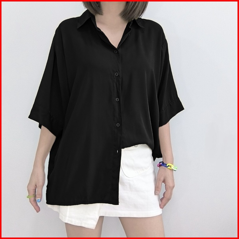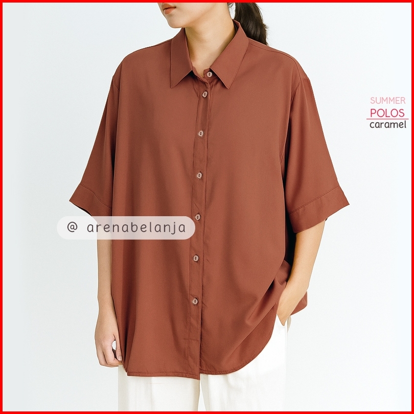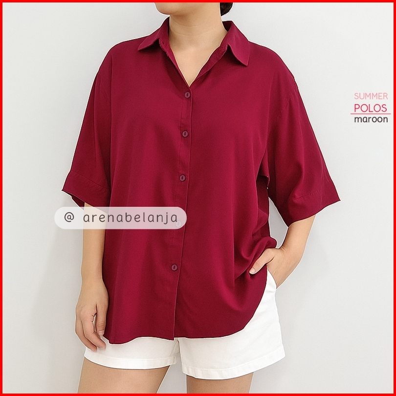 Arena - Kemeja Basic Big Size Polos Wanita Lengan Pendek Oversized Casual Shirt