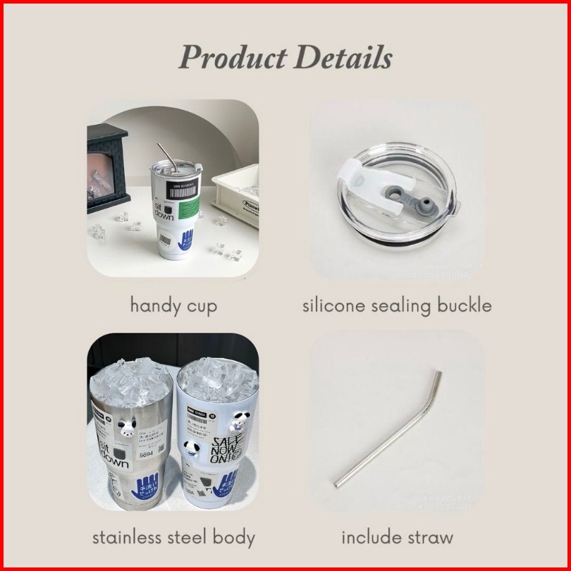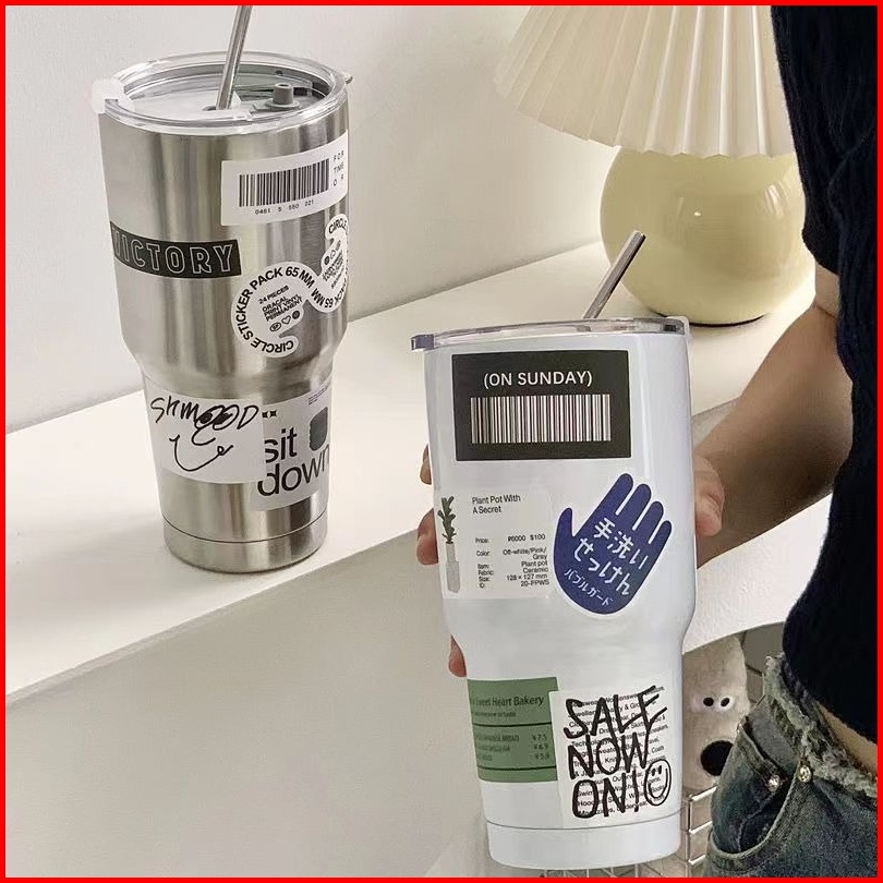 Voova 900ml Botol Minum Stainless Steel 900ml Sedotan Cangkir Boto Minum Kopi Sedotan Stainless Steel Tumblr Coffee