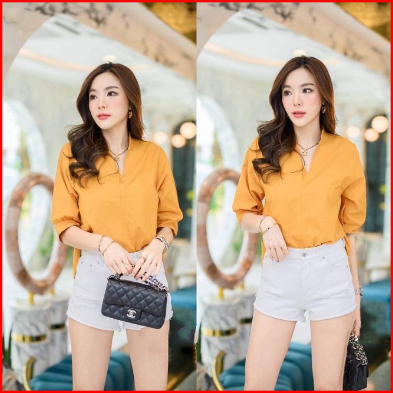 Moga Blouse Salur Blouse Wanita Fashion Blouse Vneck Atasan Blouse Wanita