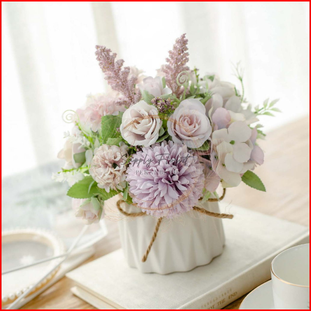 Supplyflorist - Vas Bunga Pom Mix Mawar Lavender Artificial