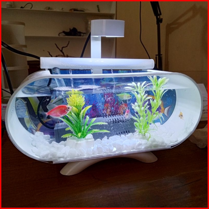 Aquarium Mini Akrilik Minimalis Full Set Besar Jumbo Pompa Filter Dan Lampu Led