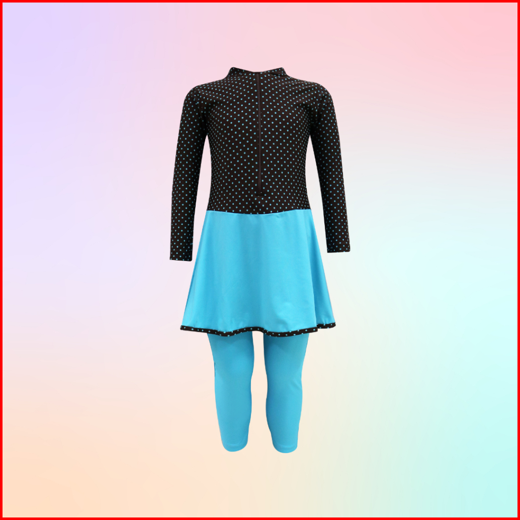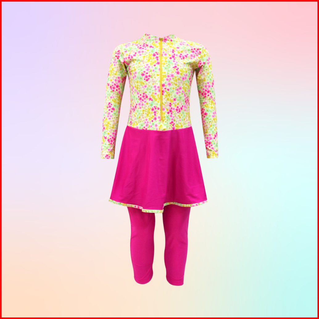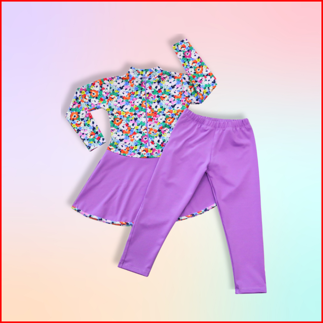 Baju Renang Panjang Anak Perempuan Motif Satu Set Atas Bawah Usia 3-11 Tahun