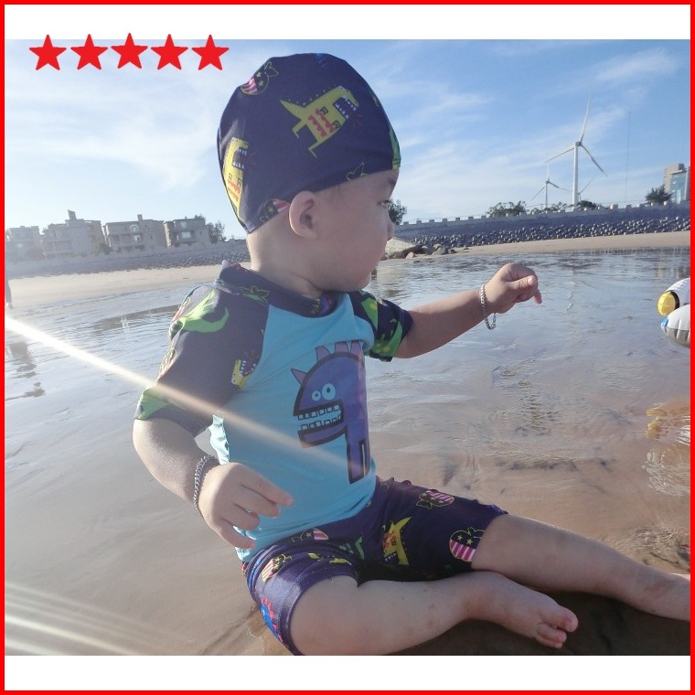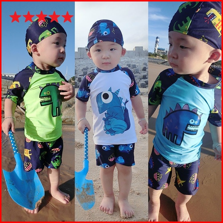 Ready 1-8tahun Anak Laki-laki Pakaian Renang Dengan Topi Anak Baju Renang Pakaian Renang Anak