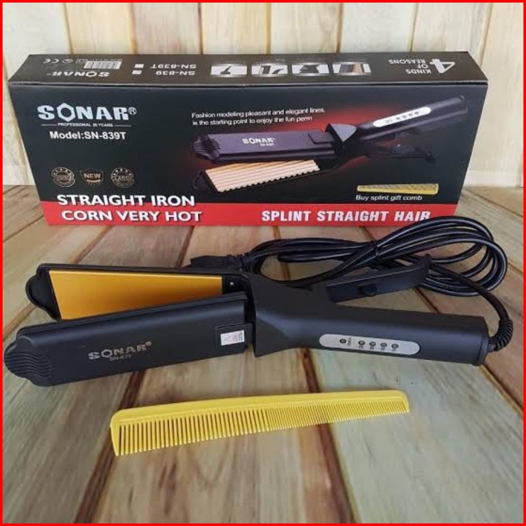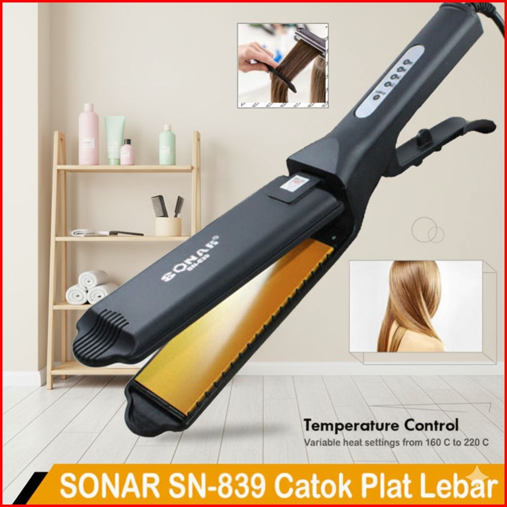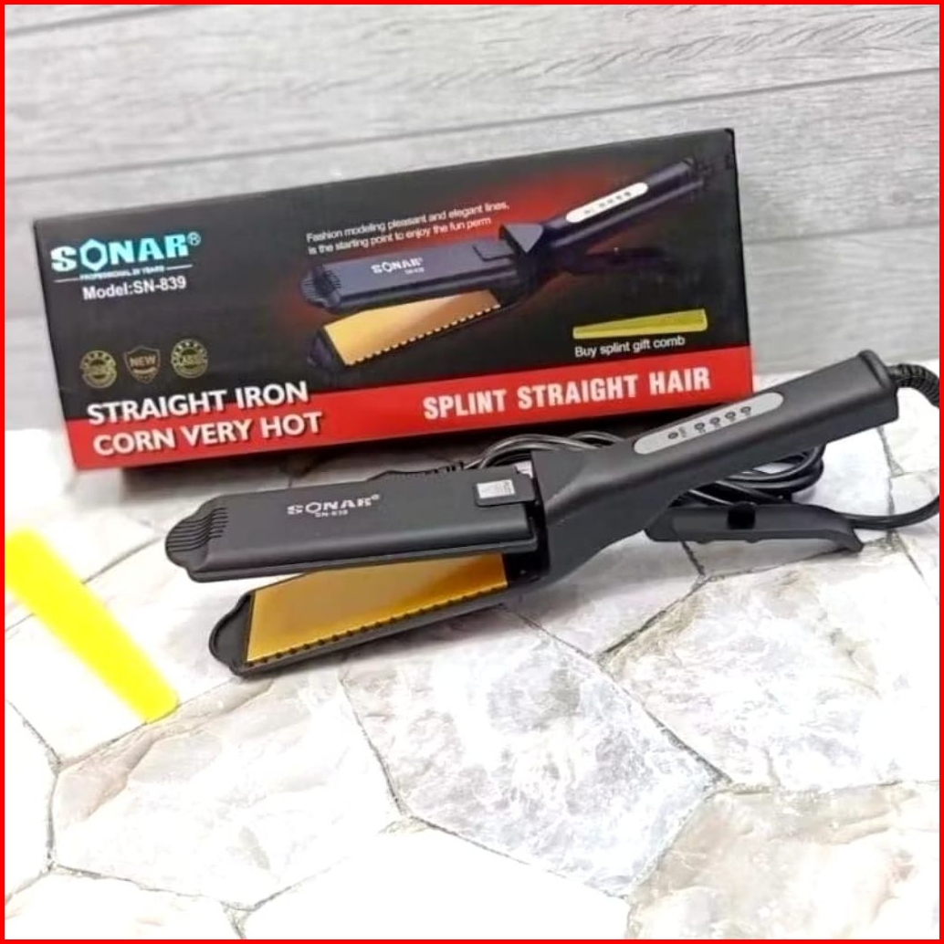 Sonar Sn-839 Catok Rambut Plat Lebar - Hair Straightener Iron Pelurus 160-220 C Pemanas Cepat-hadiah Sisir