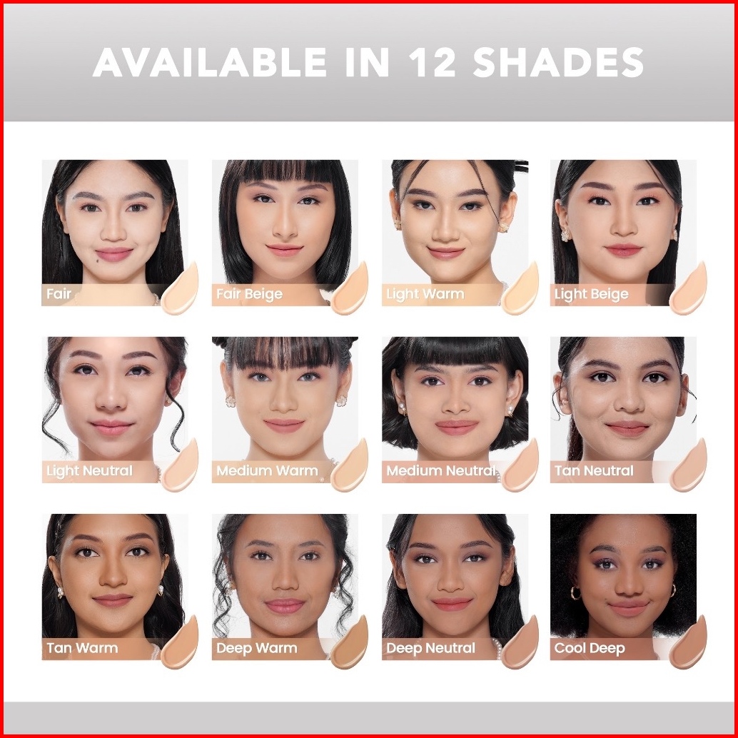 FAIR, FAIR BEIGE, LIGHT WARM, LIGHT BEIGE, LIGHT NEUTRAL, MEDIUM WARM, MEDIUM NEUTRAL, TAN NEUTRAL, TAN WARM, DEEP WARM, DEEP NEUTRAL, COOL DEEP