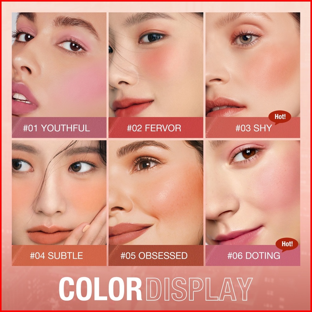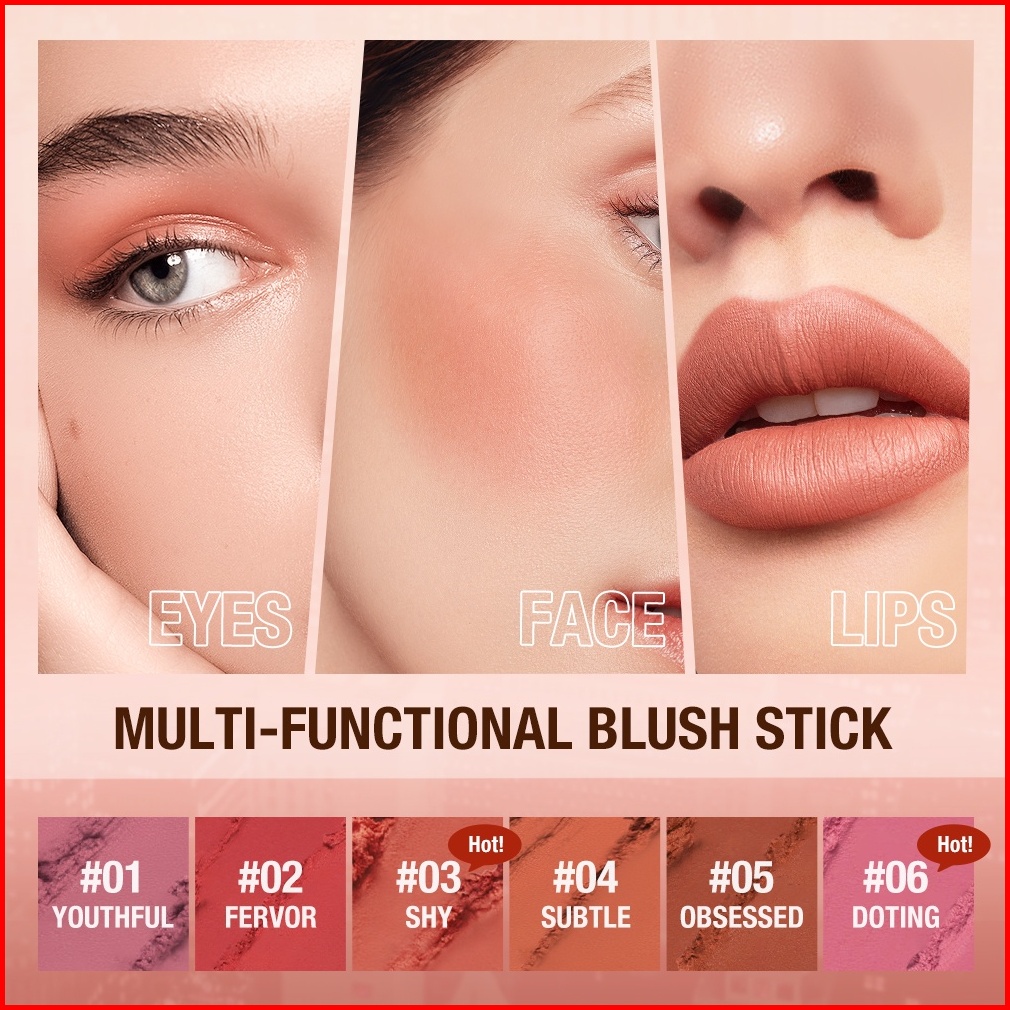 O.two.o Blush Stick Cream Blusher 6 Colors Blendable Waterproof Long-lasting Lip Cheek Eye Multi-use Stick