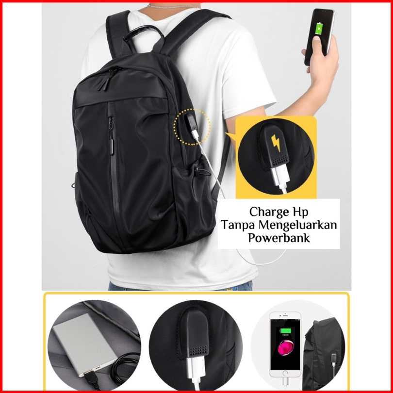 Tas Pria 70002 - Tas Ransel Nilon Polos Tas Pria Kerja Kuliah Sekolah Travel Hiking Backpack Tas Ransel Laptop - E
