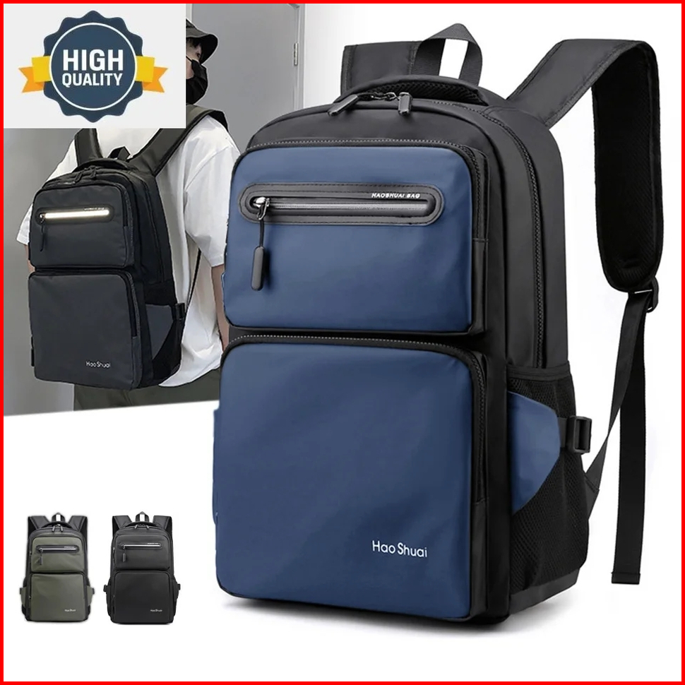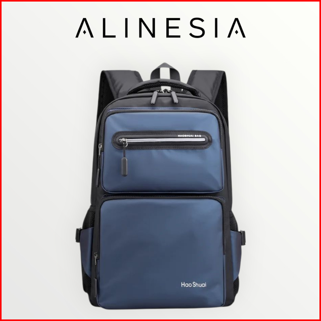 Alinesia - Tas Ransel Pria Wanita Waterproof Tas Laptop Punggung Anti Air Backpack Daily Tas Kuliah Black Abu Hijau