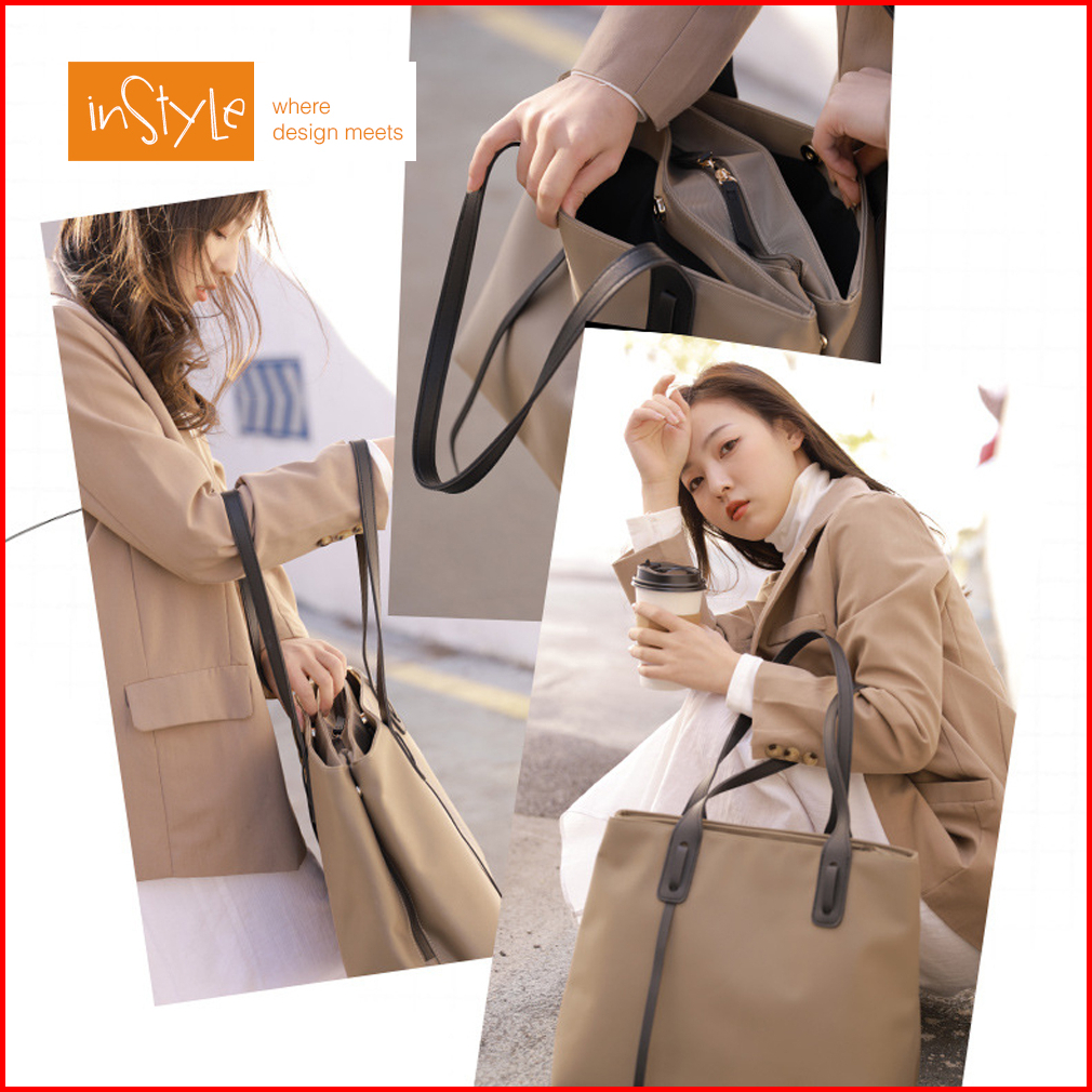 Tas Laptop Bahu Premium Nilon Oxford Wanita Korean Style Tote Bag Anti Air T14-t10-002