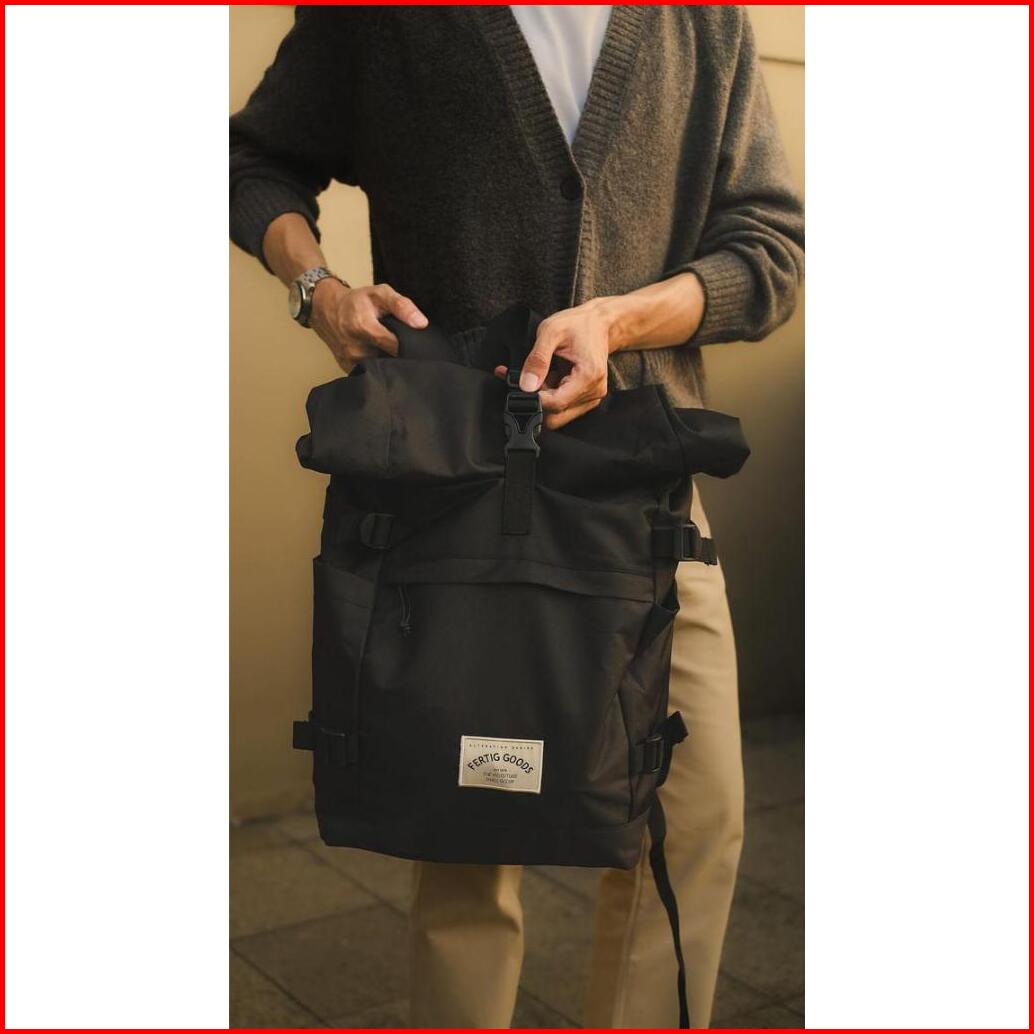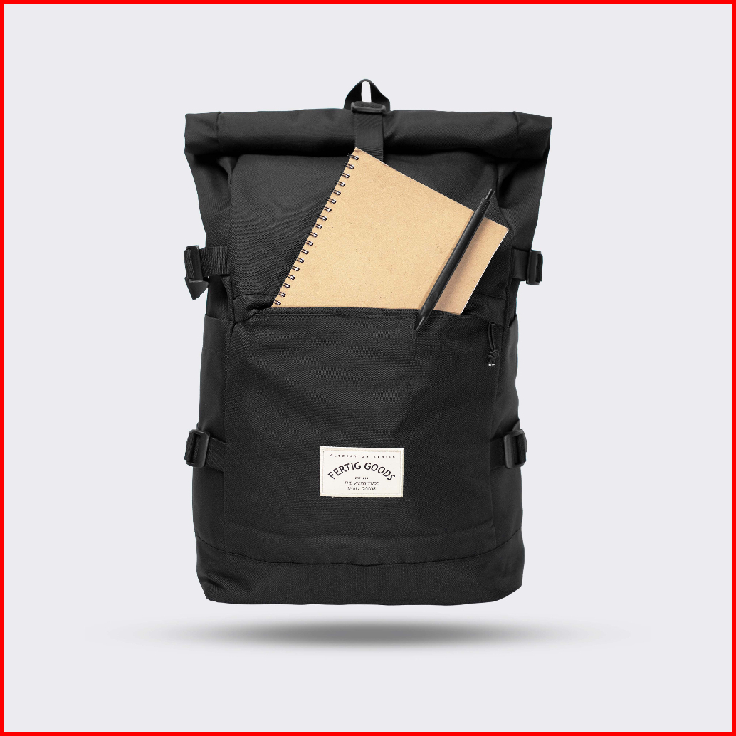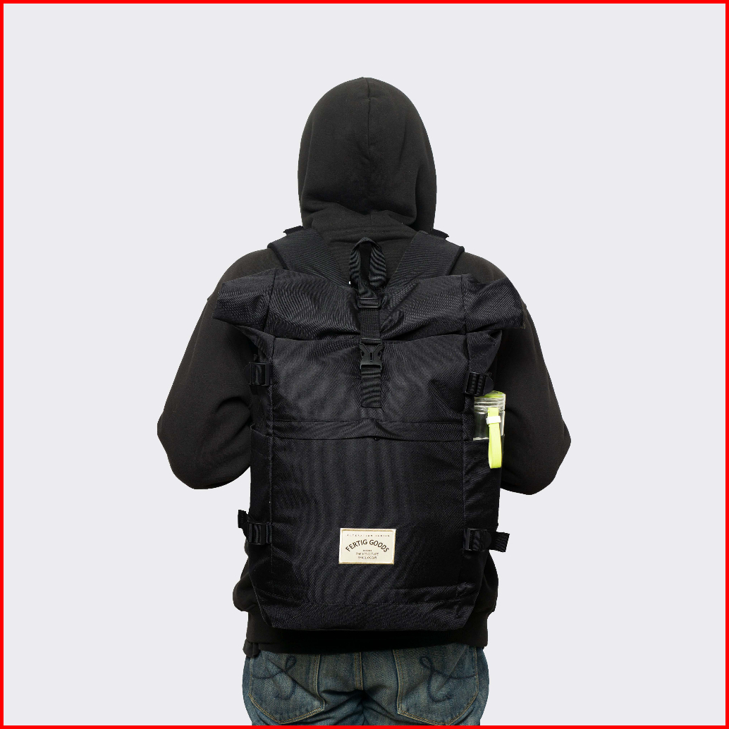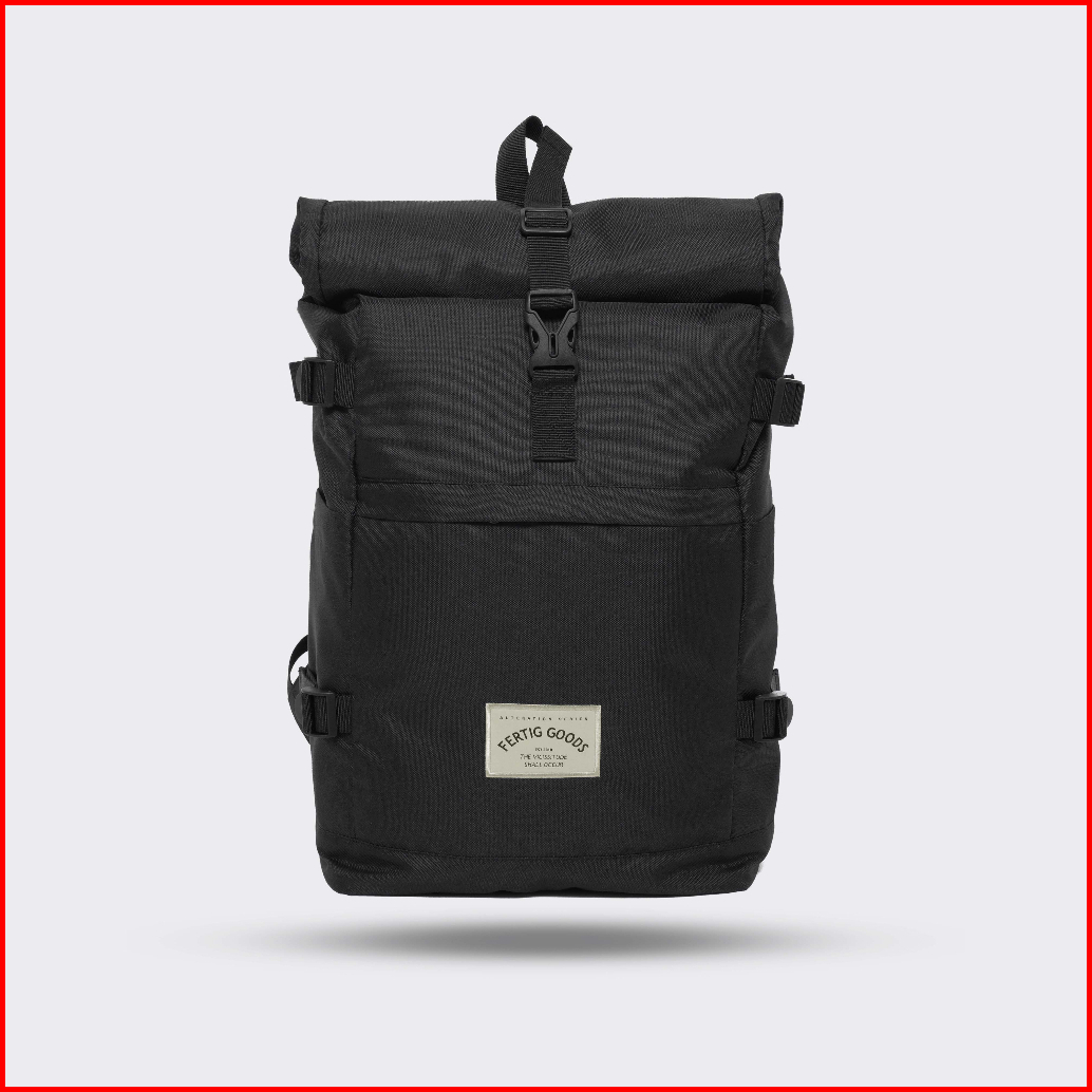 Fertig - Ben Black - Tas Ransel Sekolah Pria - Backpack Rolltop Hitam - Muat Laptop Sampai Ukuran 15 5