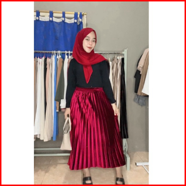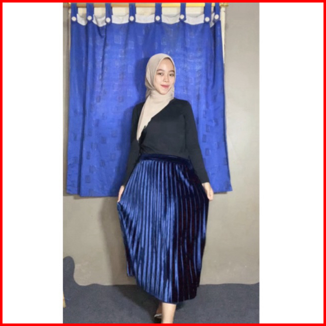 Rok Plisket Bludru Velvet 7 8 Premium Rok Plisket Bludru Pendek Rok Bludru Velvet 7 8