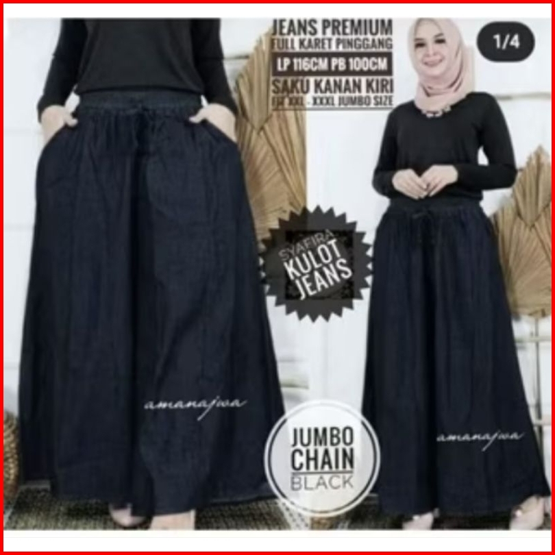Celana Kulot Jeans Jumbo Xxl Bawah Lebar Kualitas Bagus Celana Panjang Wanita