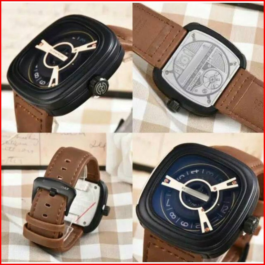 Jam Tangan Pria Sporty Sf Kotak M2 Strap Kulit