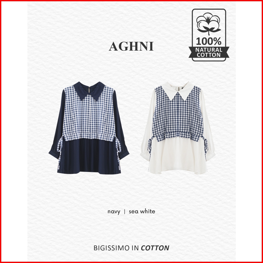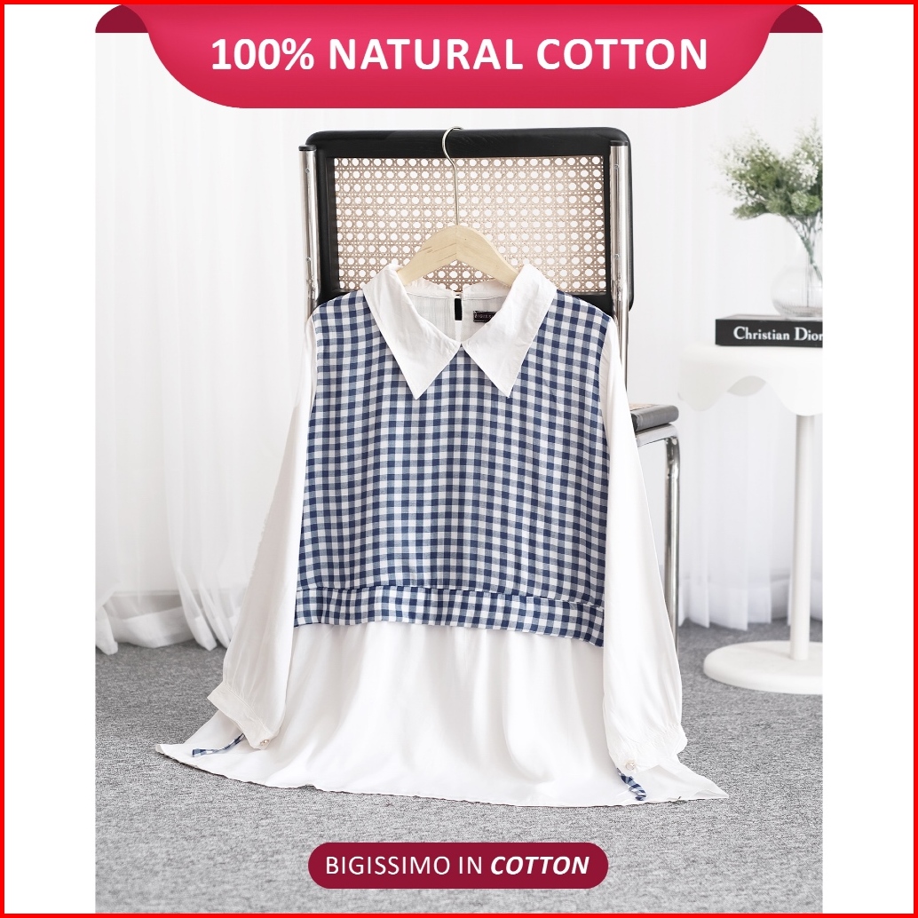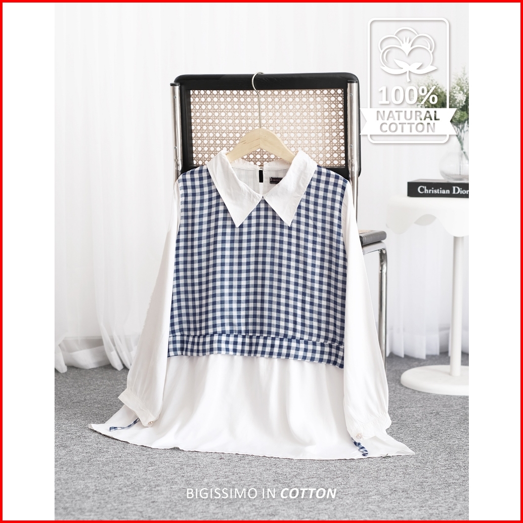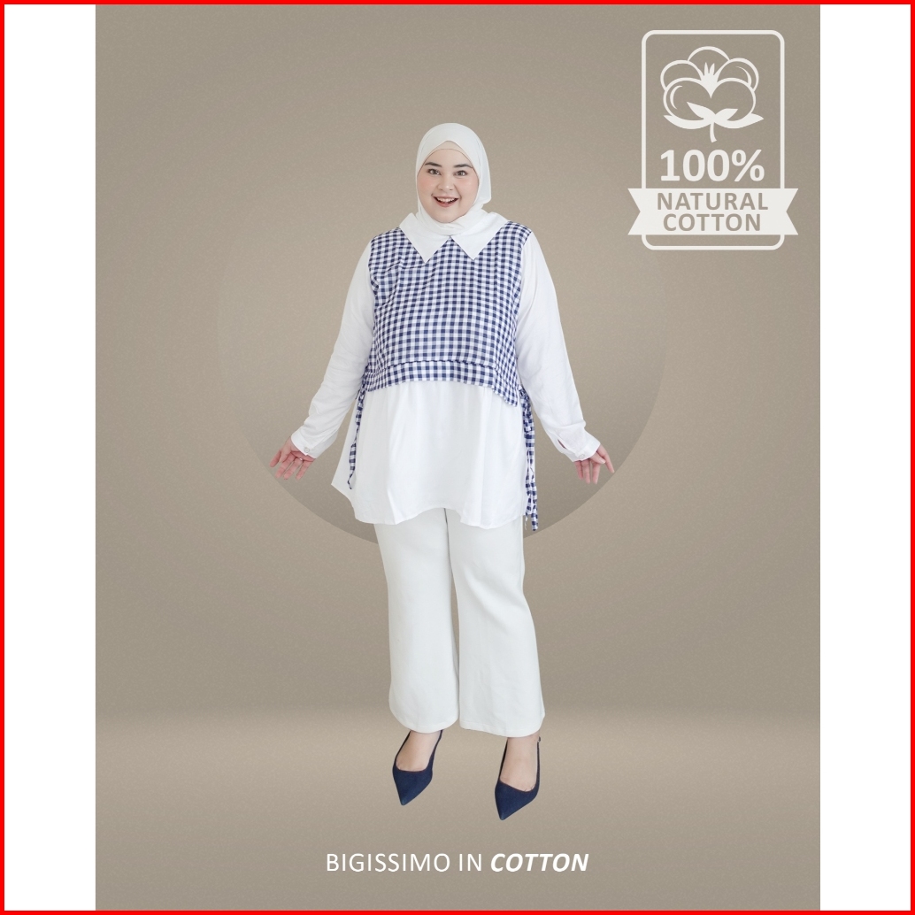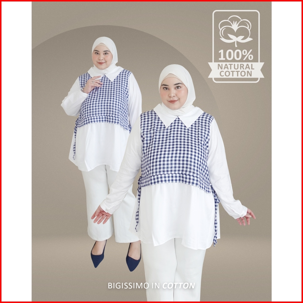 Bigissimo In Cotton - Aghni Blouse Atasan Wanita Blouse Kemeja Cotton Motif Kotak Big Size Jumbo Ld 130