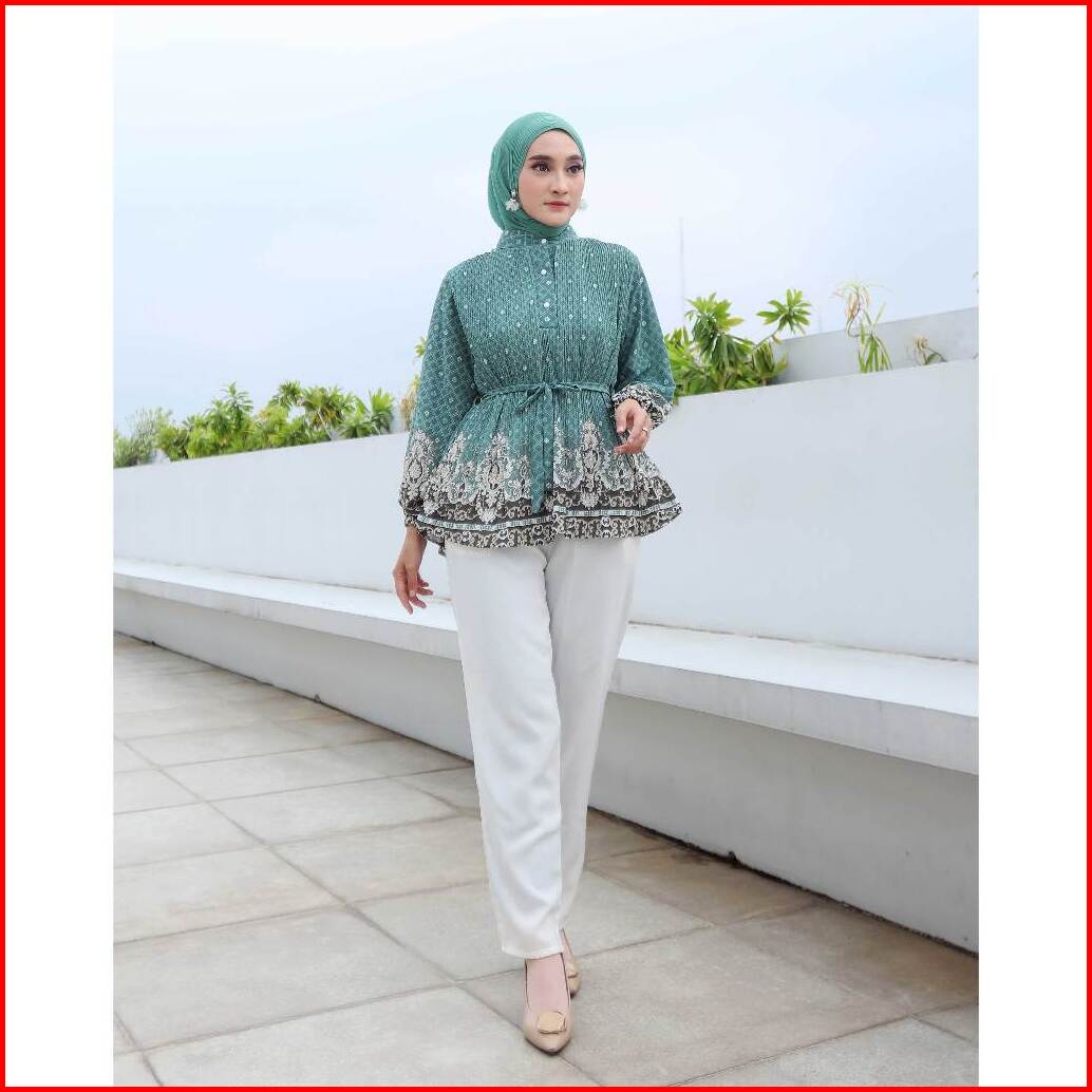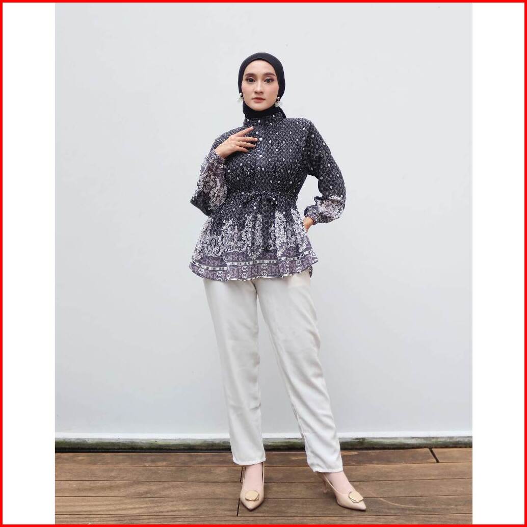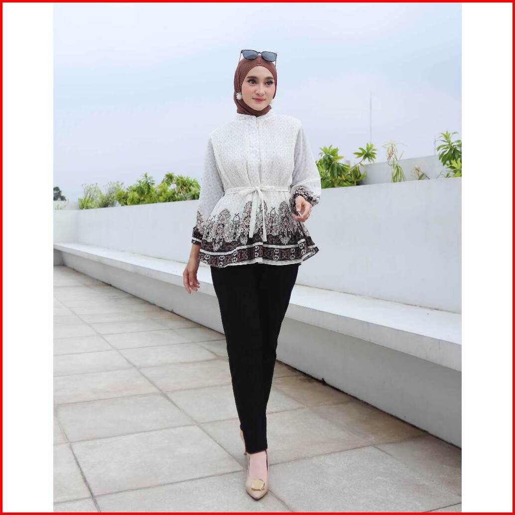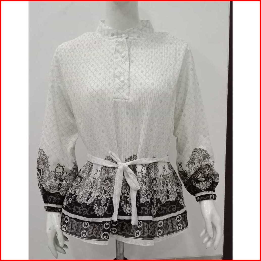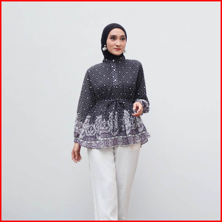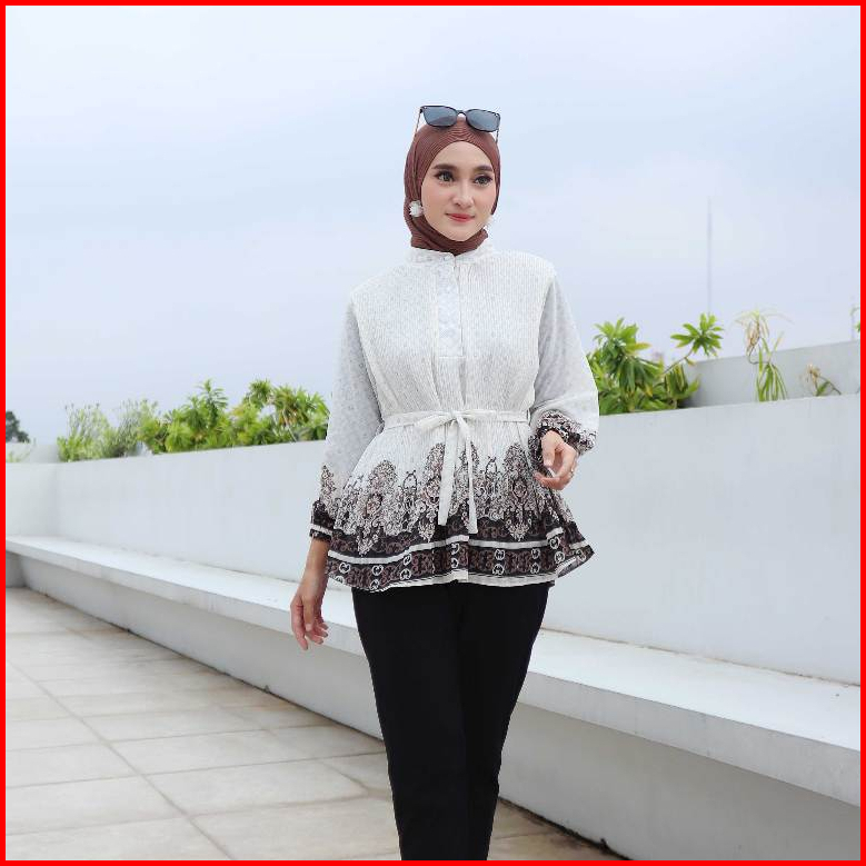 Gamora Blouse Tangan Panjang Corak Plisket Corak 2 Lapis 818