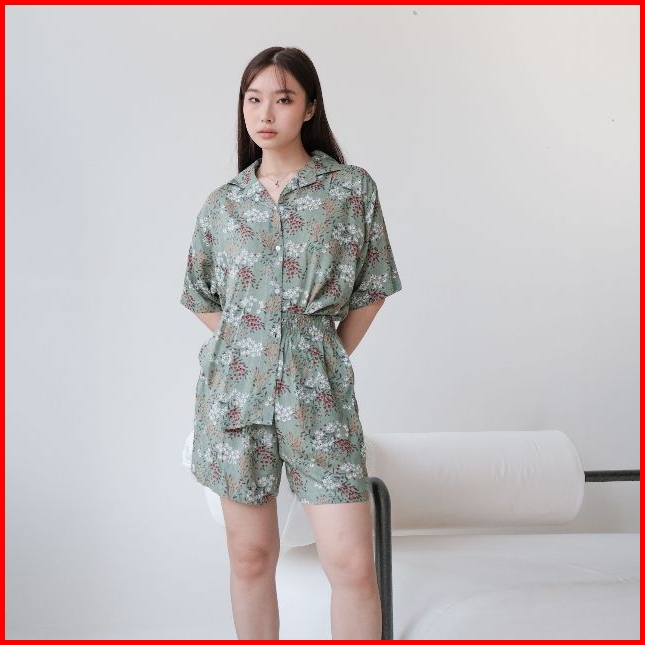 Sagi - Heather Pajamas Shirt Set Setelan Kemeja Celana Pendek